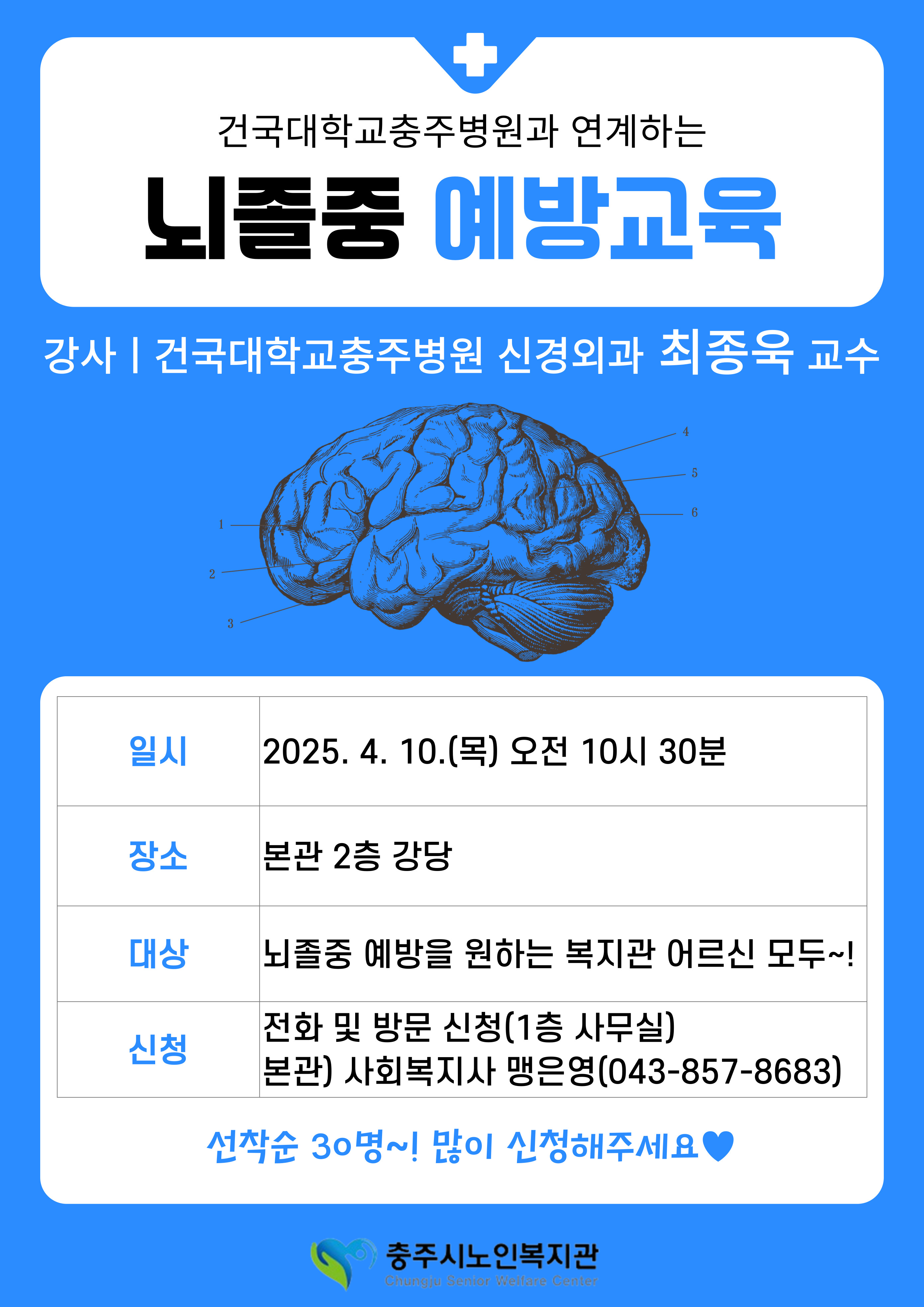 [본관] 건국대학교충주병원 <뇌졸중 예방교육> 참여자 모집