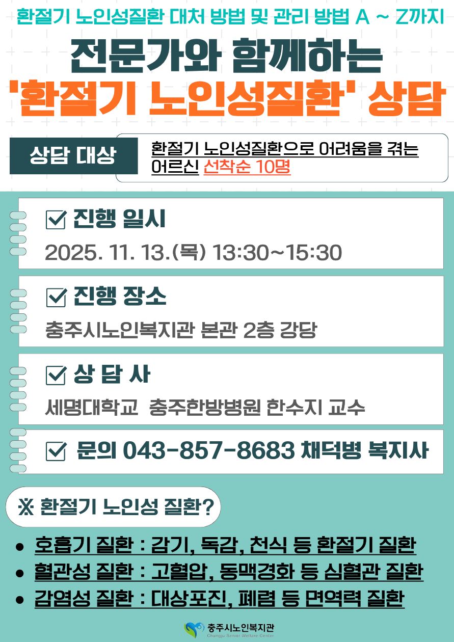 [본관] 4분기 정보제공상담 '환절기 노인성질환 상담' 신청자 모집