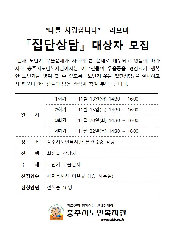 "나를 사랑합니다." -러브미 집단상담 참여자 모집