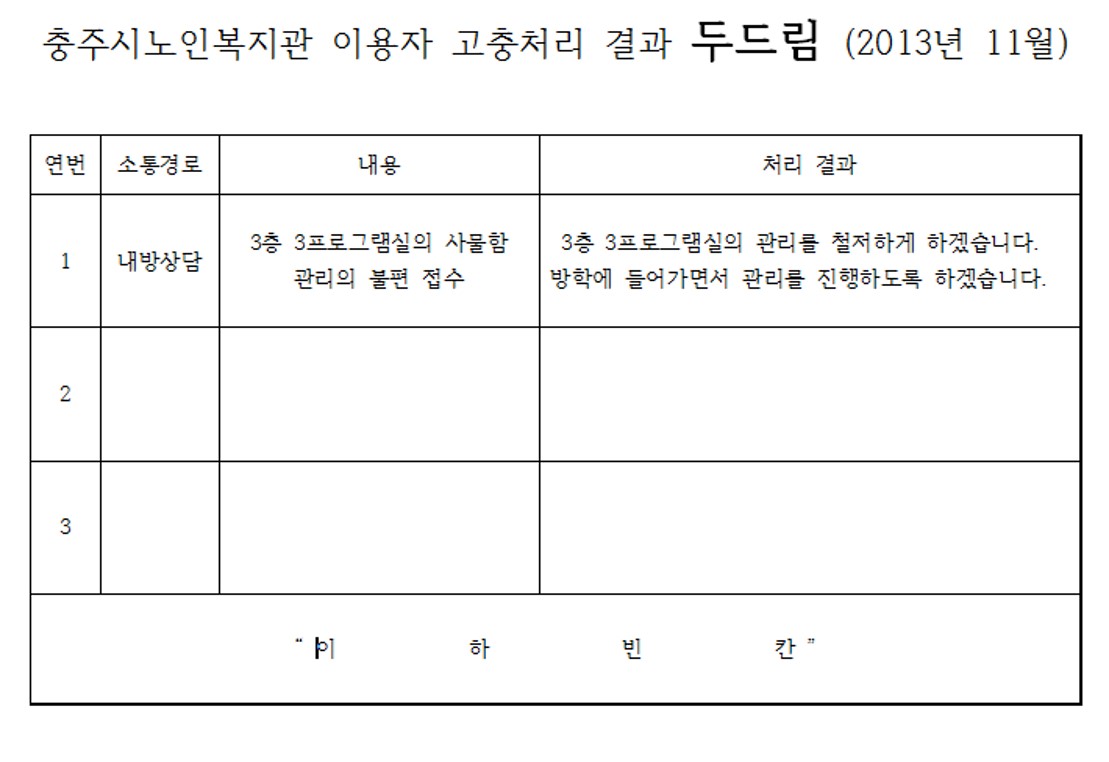 충주시노인복지관 이용자고충처리결과(2013.11월)