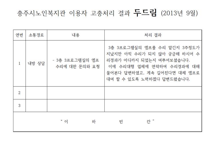 충주시노인복지관 이용자고충처리결과(2013.9월)