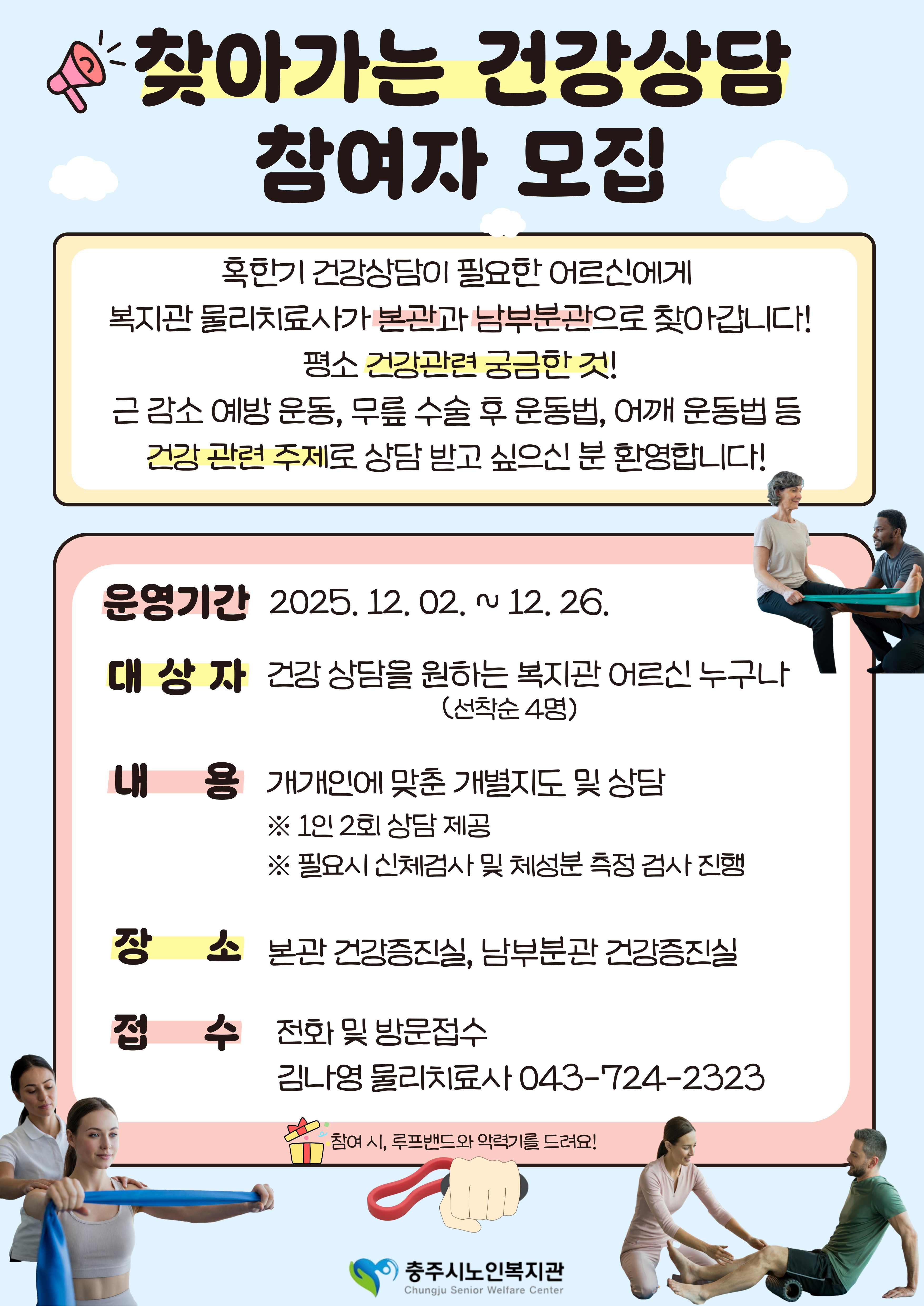 복지관 물리치료사가 "본관"과 "남부분관"으로 찾아갑니다!