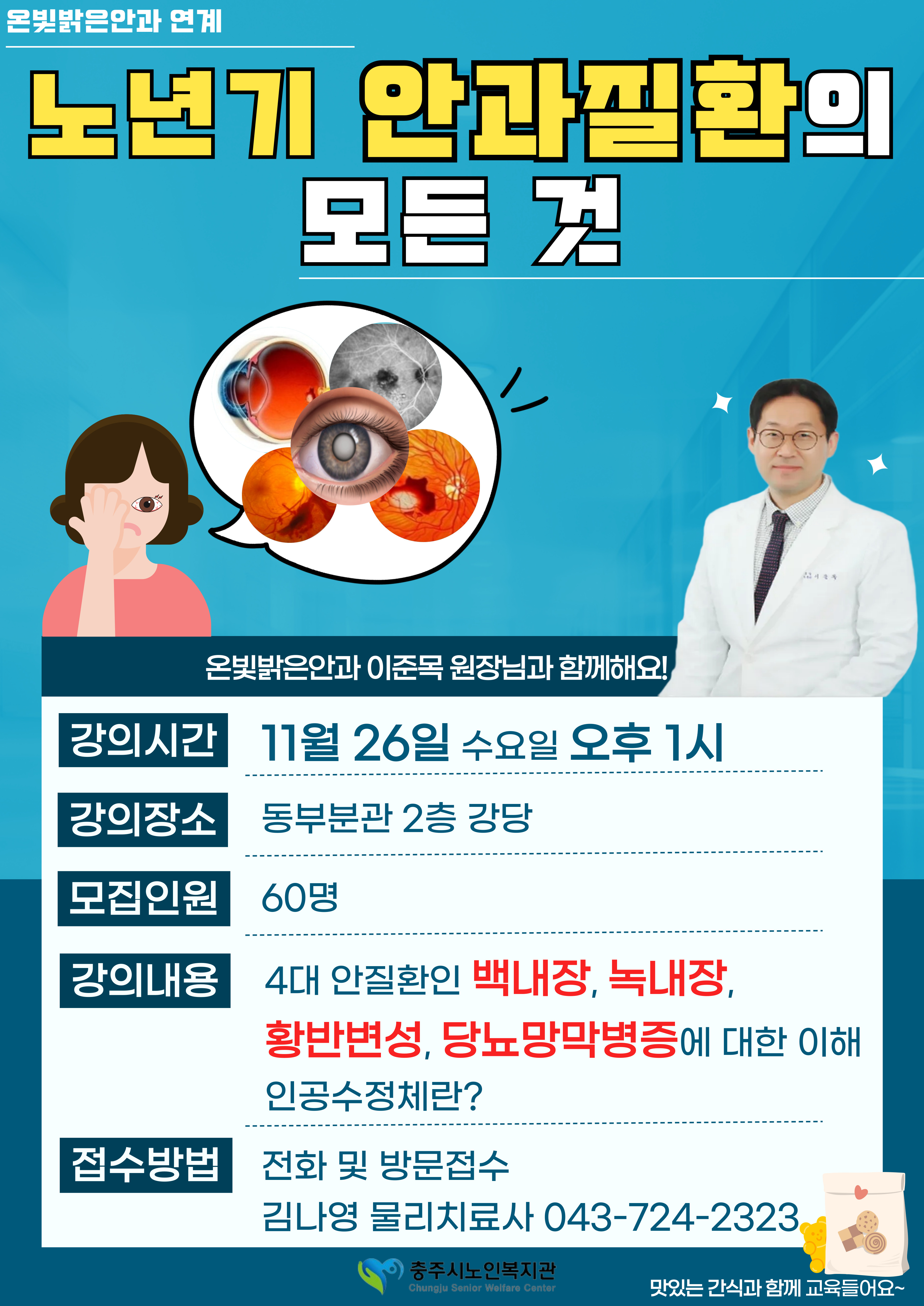온빛밝은안과와 연계하여 '노년기 안과질환의 모든 것'에 대한 교육을 진행합니다!