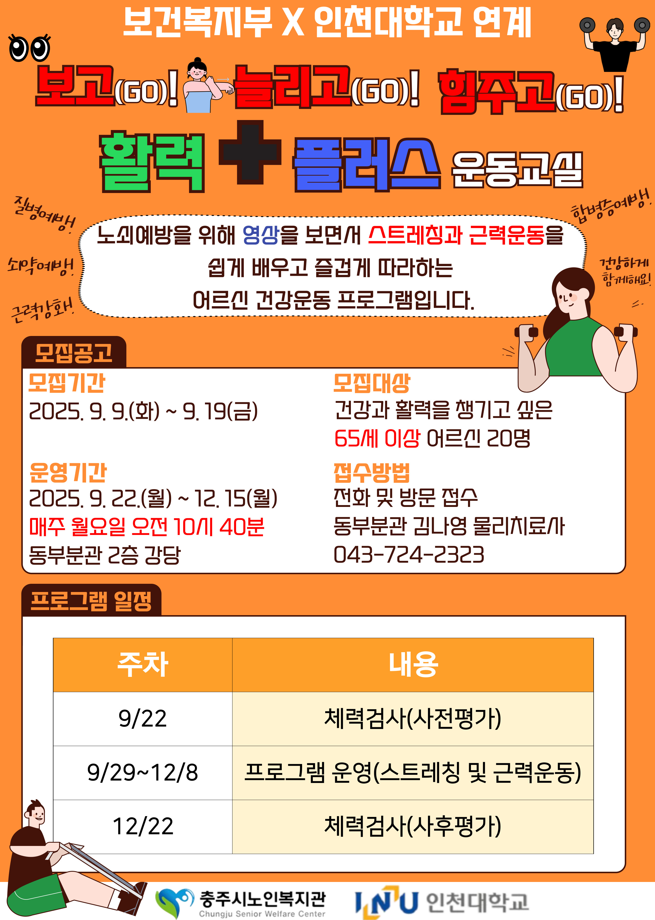 '보고! 늘리고! 힘주고! 활력 플러스 운동교실' 참여자를 모집합니다.
