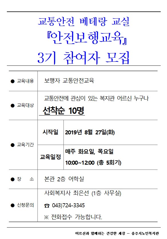 베테랑 교통안전교실 『안전보행교육』 3기 참여자 모집
