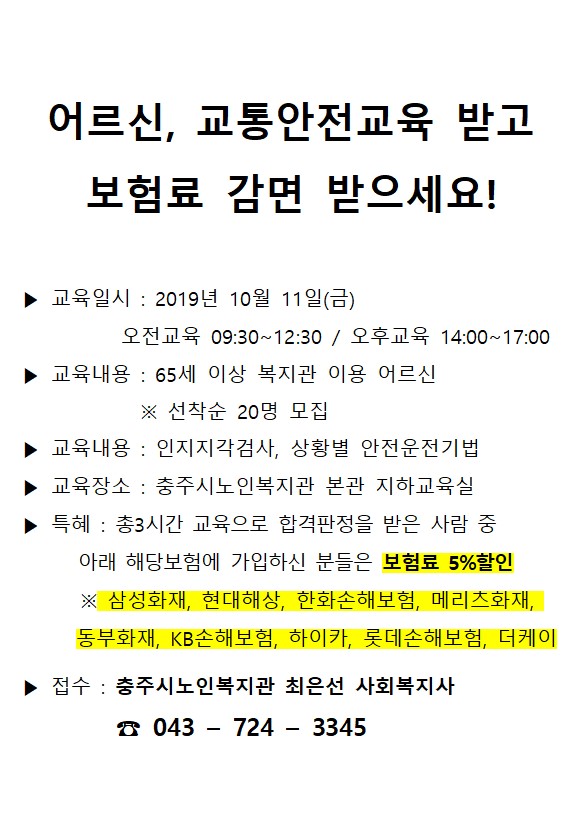 베테랑 교통안전교실 운전자 교육 참여자 모집