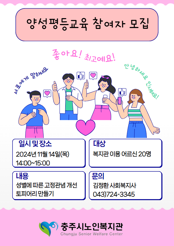 [남부분관,동부분관] 양성평등 교육 참여자 모집