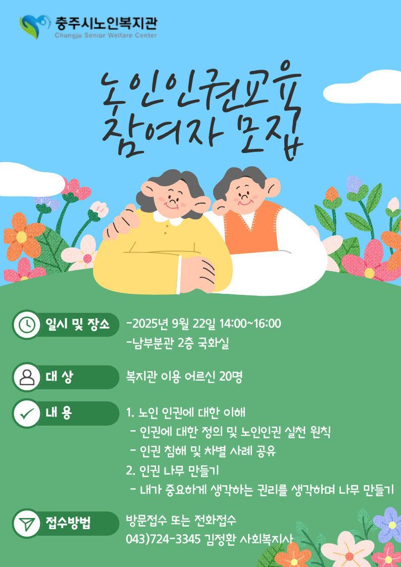 노인복지관 남부분관에서는 어르신들의 노인권익증진을 위해 충북북부노인보호전문기관과 연계하여