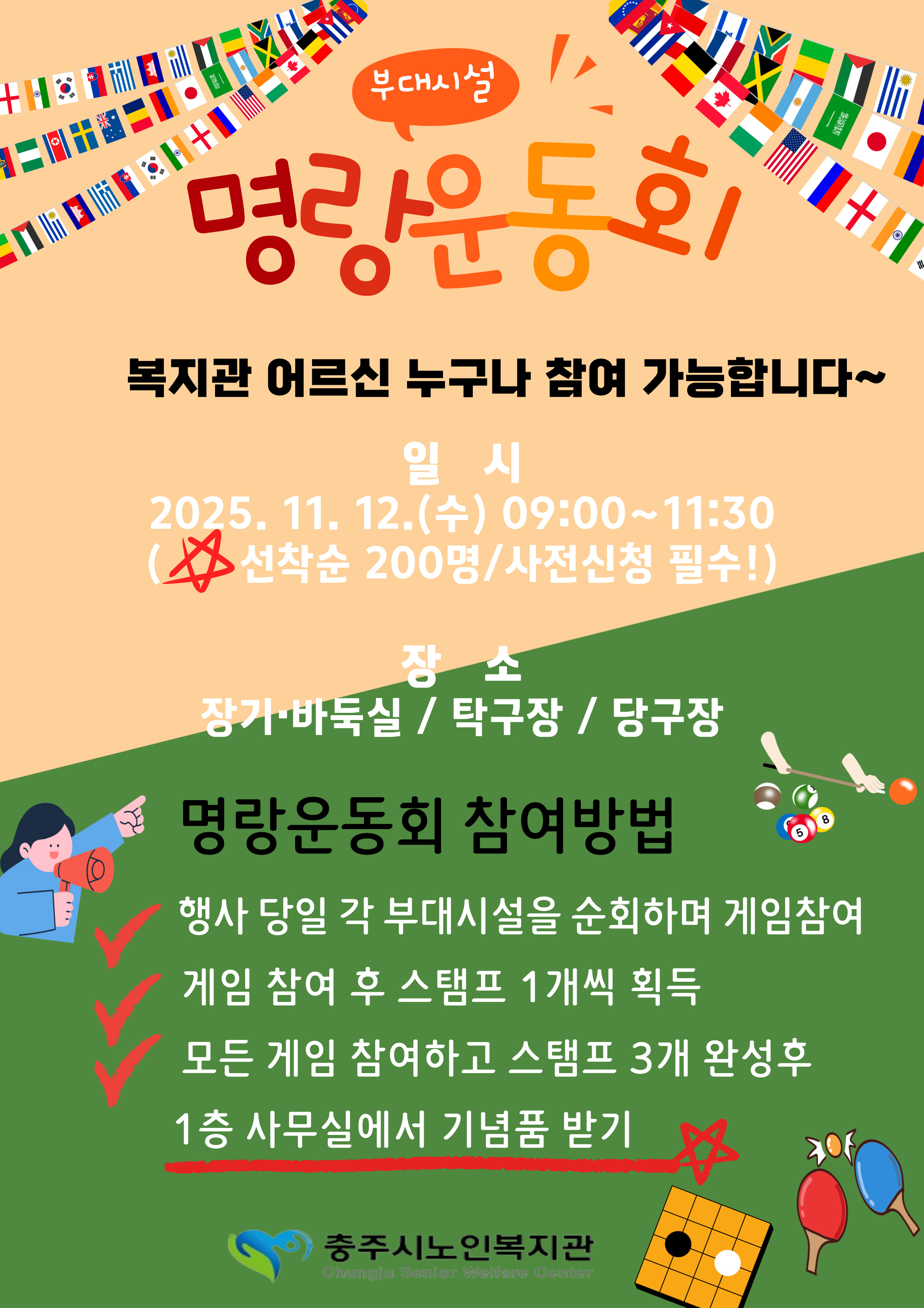 탁구장, 당구장, 장기바둑실 마다 준비된 게임을 모두 통과하고 도장을 모아보세요!!