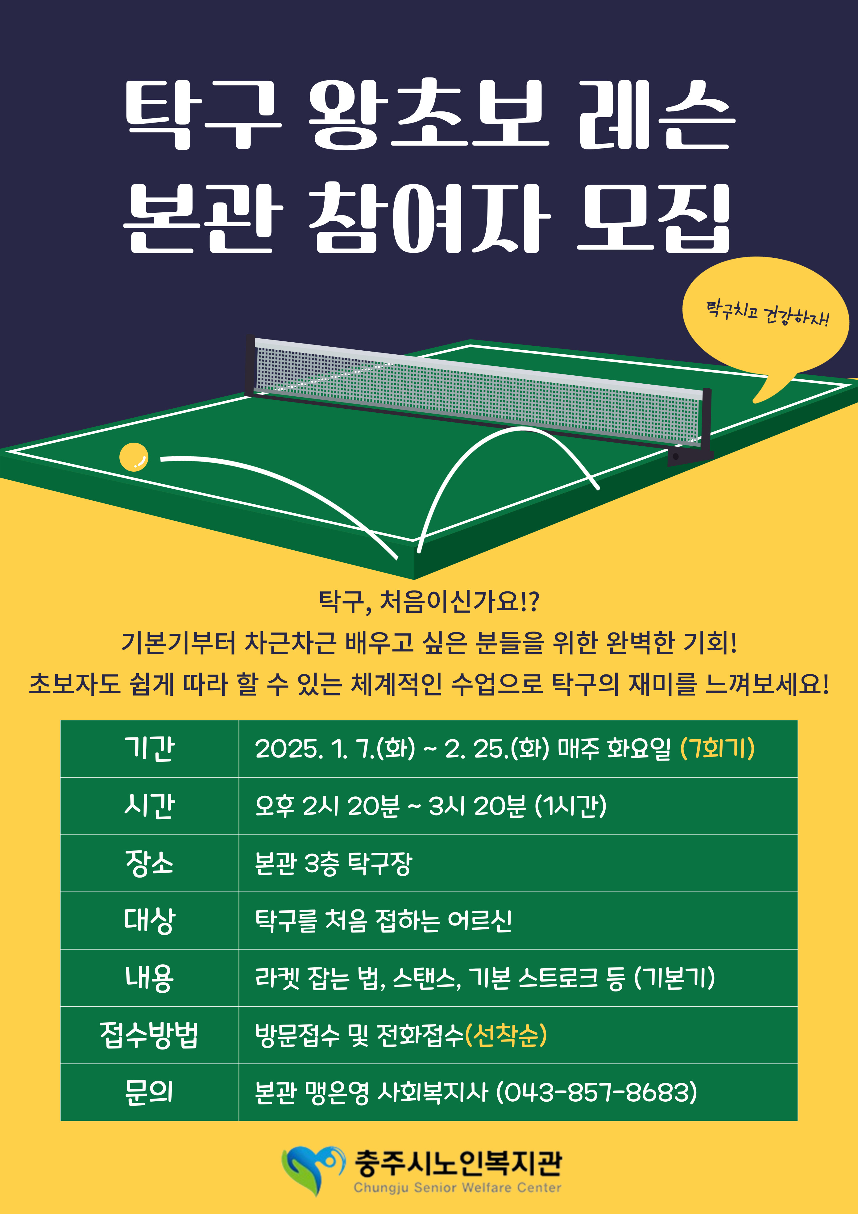 [본관, 남부분관, 동부분관] 당구, 탁구 초보 레슨 참여자 모집