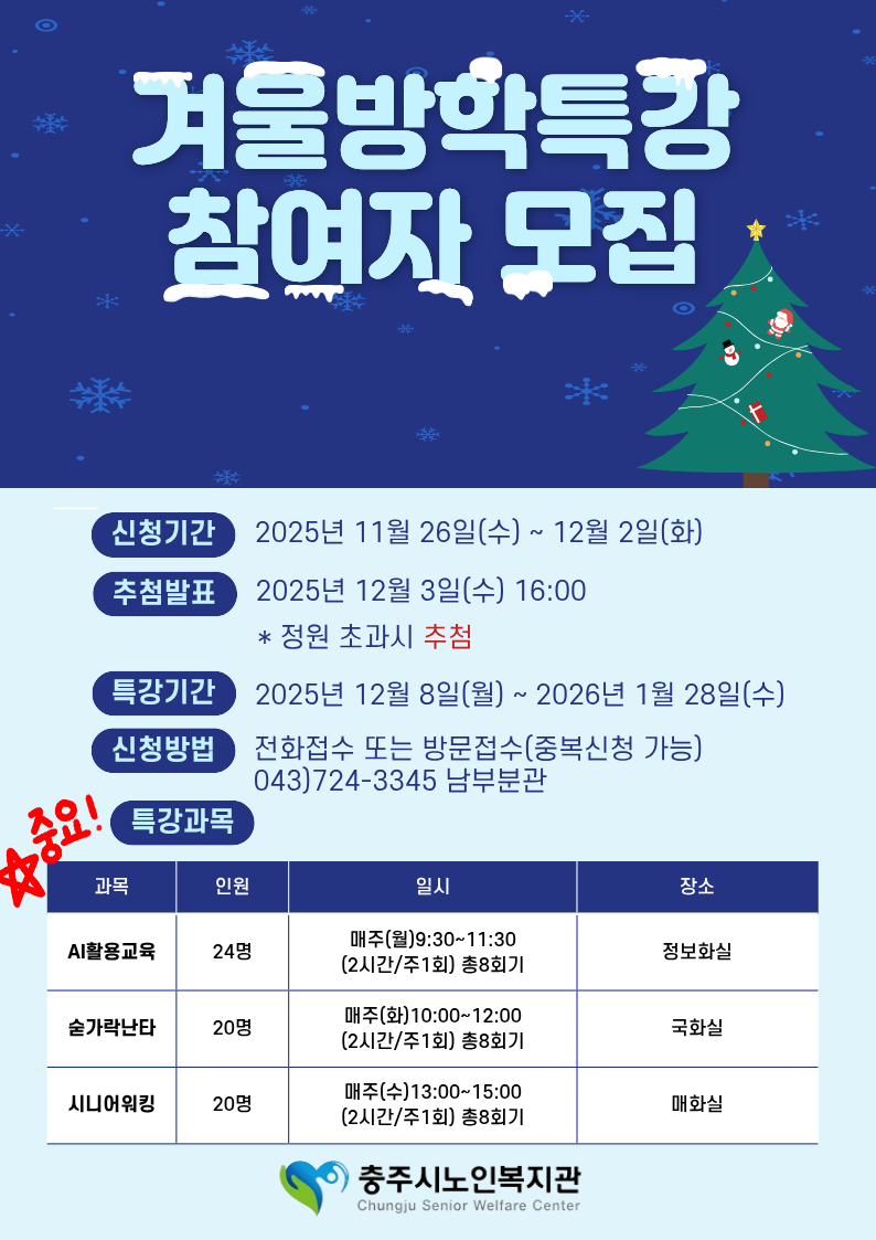 겨울방학특강 참여자모집