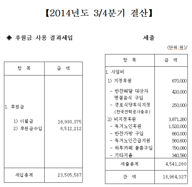 2014 3/4분기 후원금결산