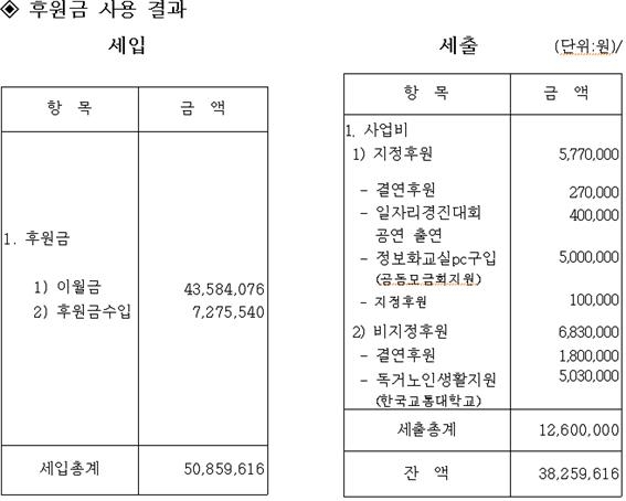충주시노인복지관 1/4분기 후원금 결산