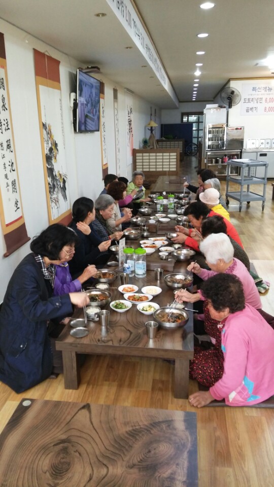 어르신들에게 지속적은 관심을 가져주시고 고생해 주시는 숲속장수촌, 이정동 전통묵밥(해뜰) 사장님 및 직원분들에게