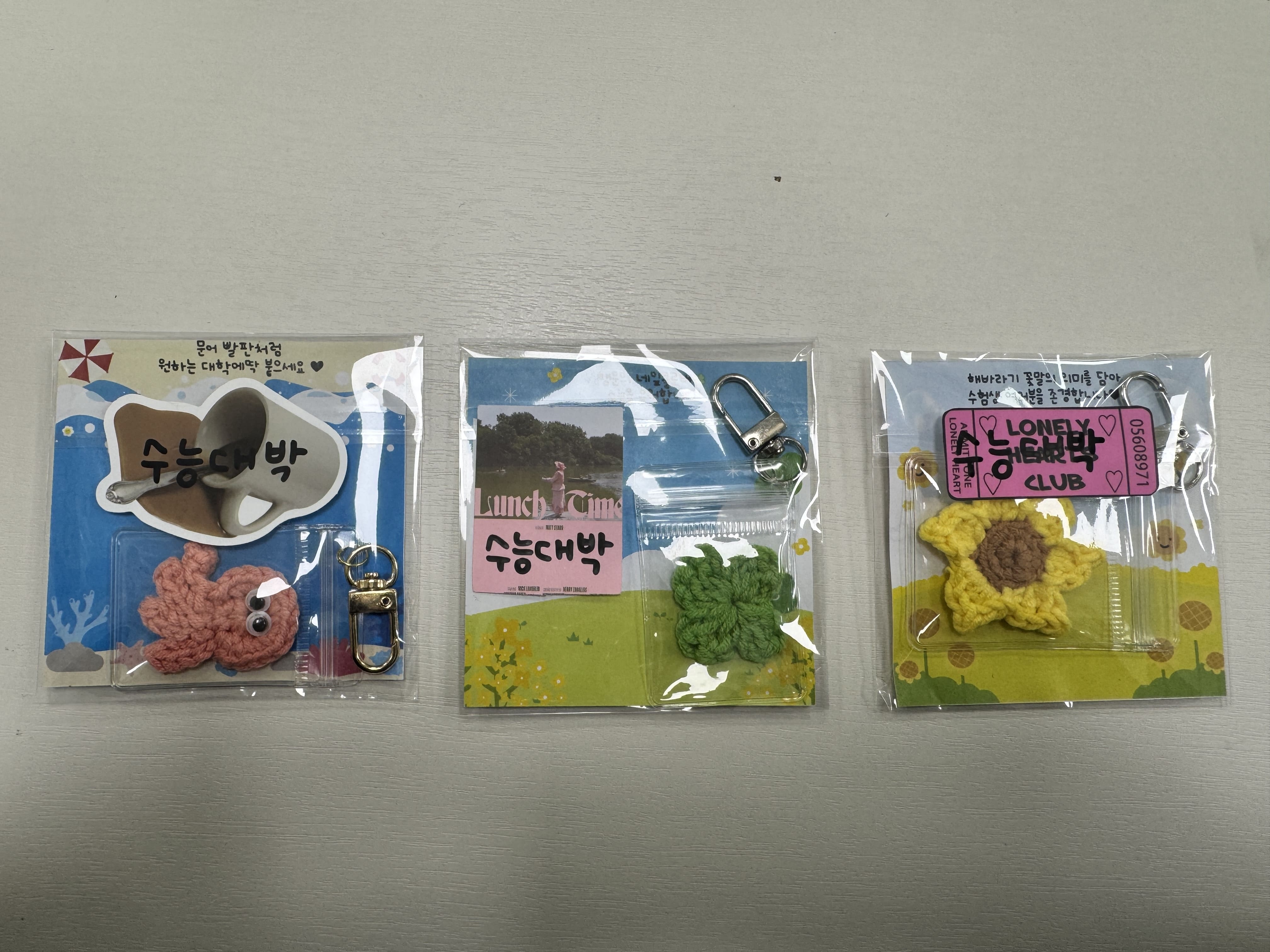 키링에는 "네 펜이 가는 곳마다 정답이 되길", "모든 노력이 빛나길" 등 다양한 응원메세지를 함께 넣었습니다!