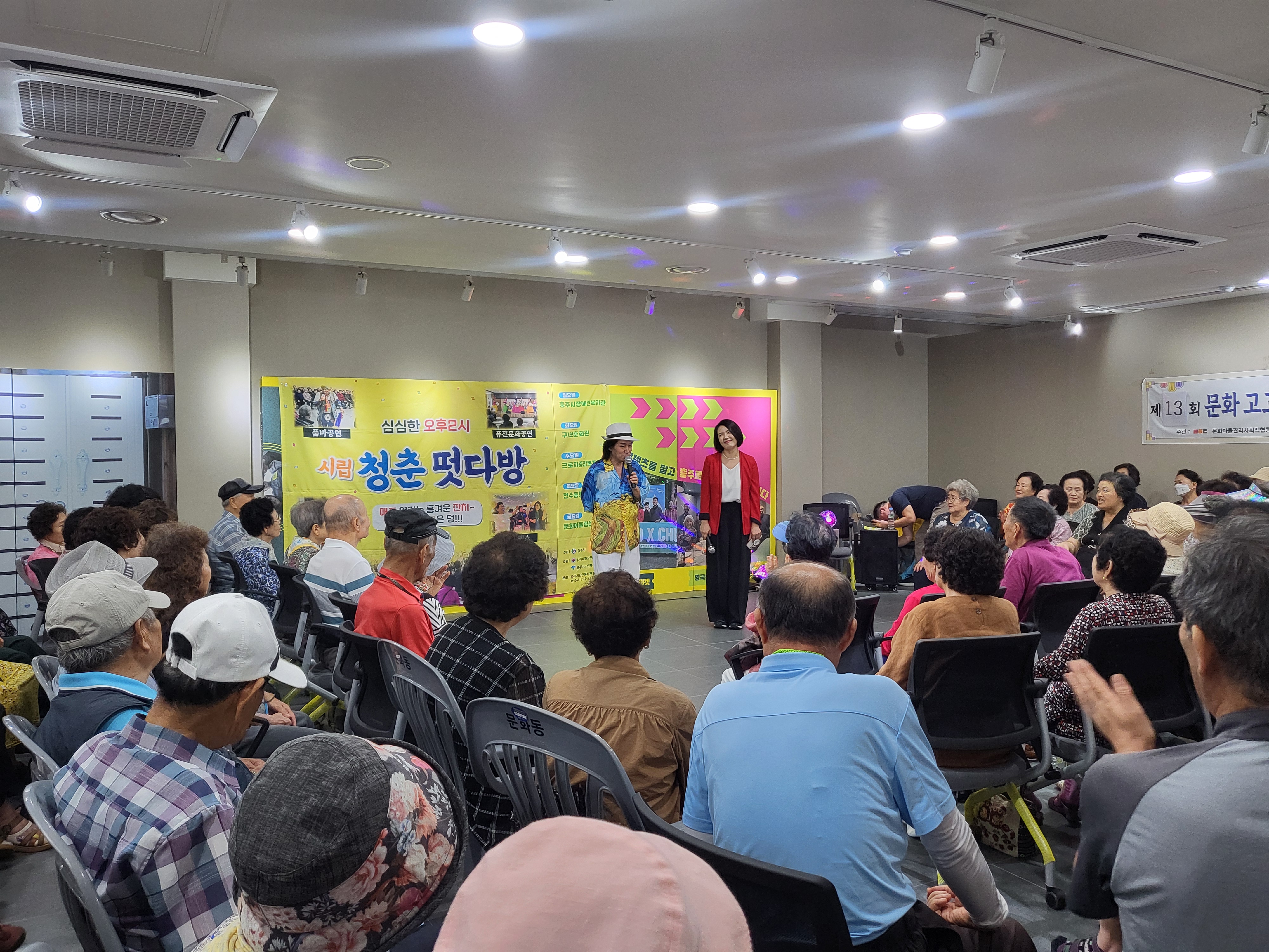 충주 시내 5개 거점 시설에서 매일 오후 2시 다양한 공연을 진행하여 어르신들께 즐거움과 웃음을 선사하였습니다.