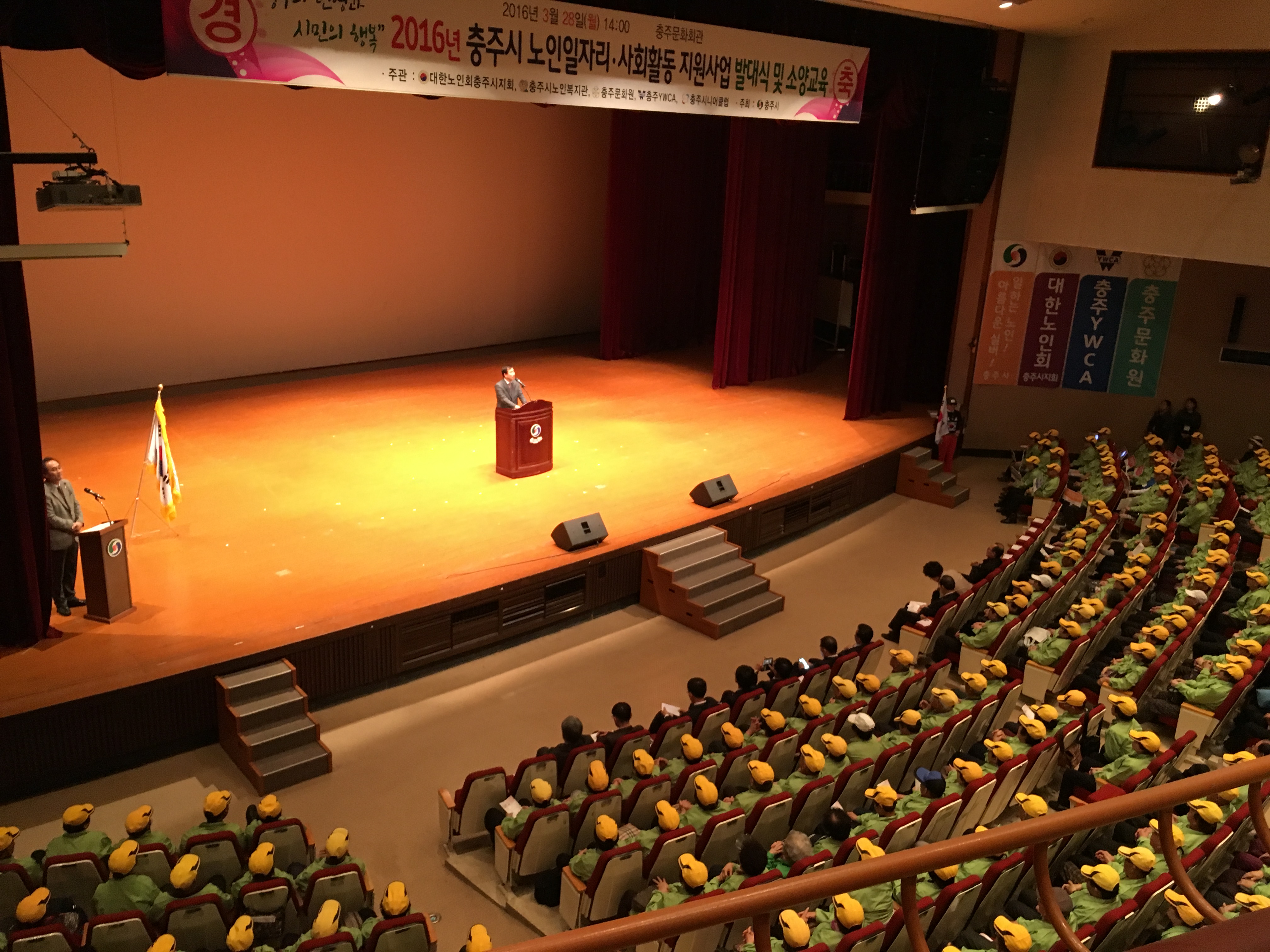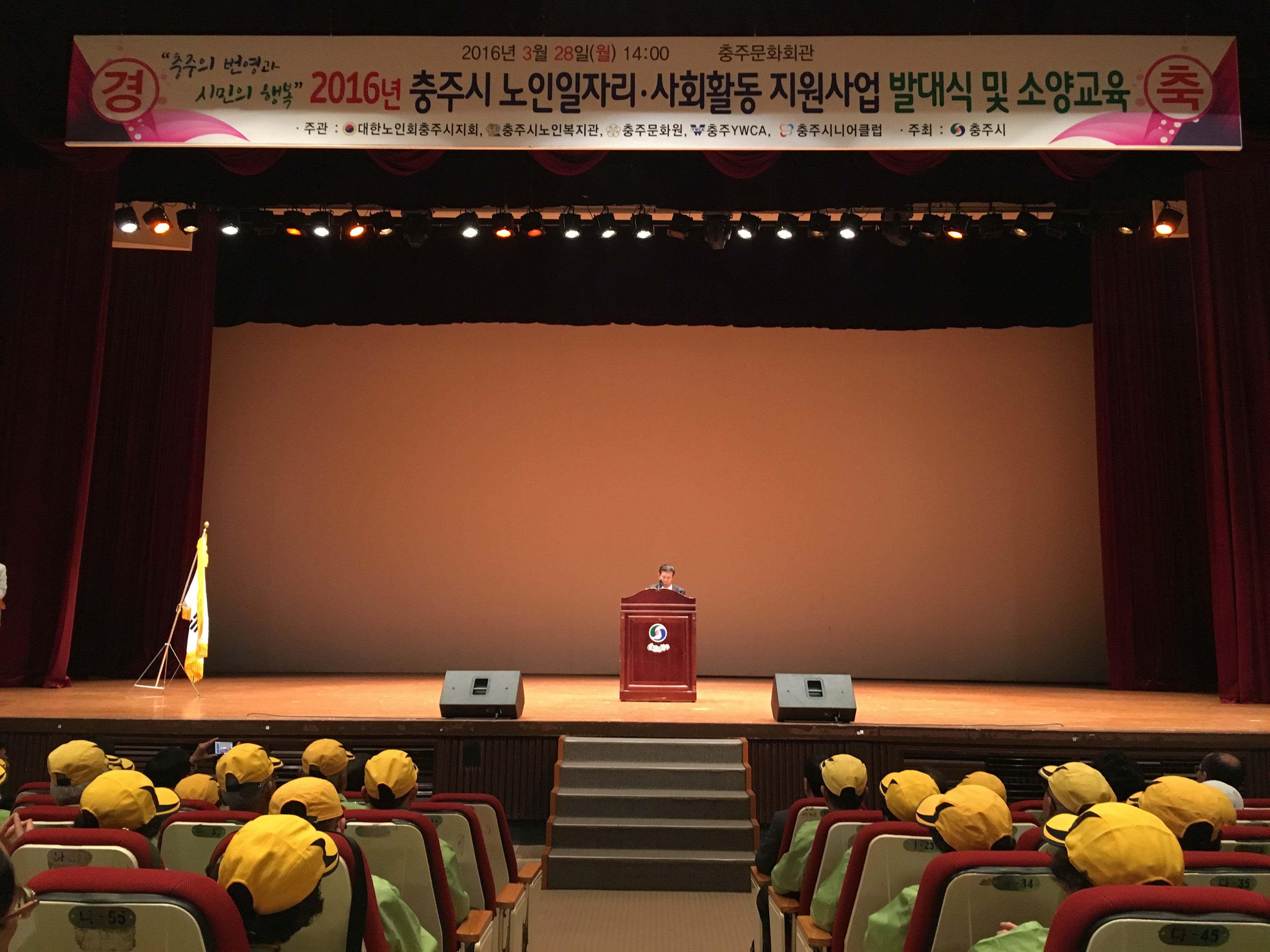 3월 28일 2016년 노인 일자리 및 사회활동 지원사업의 발대식을 충주문화회관에서 가졌습니다.