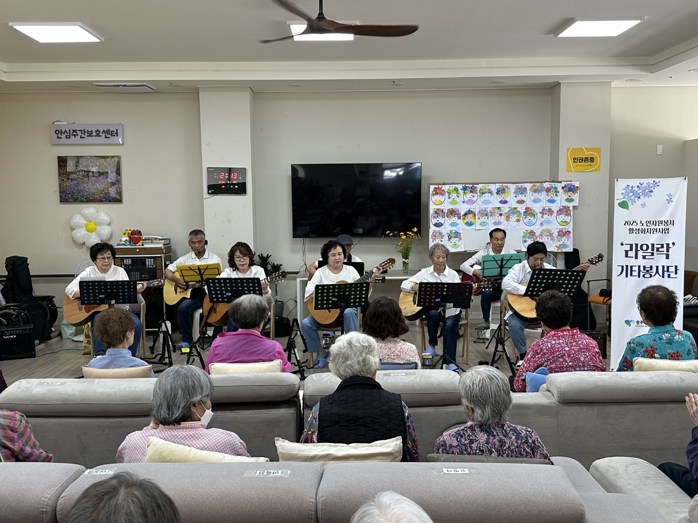 '라일락' 기타봉사단은 요양원 및 지역의 유관기관에 방문하여 문화예술을 지원하는 봉사단입니다.