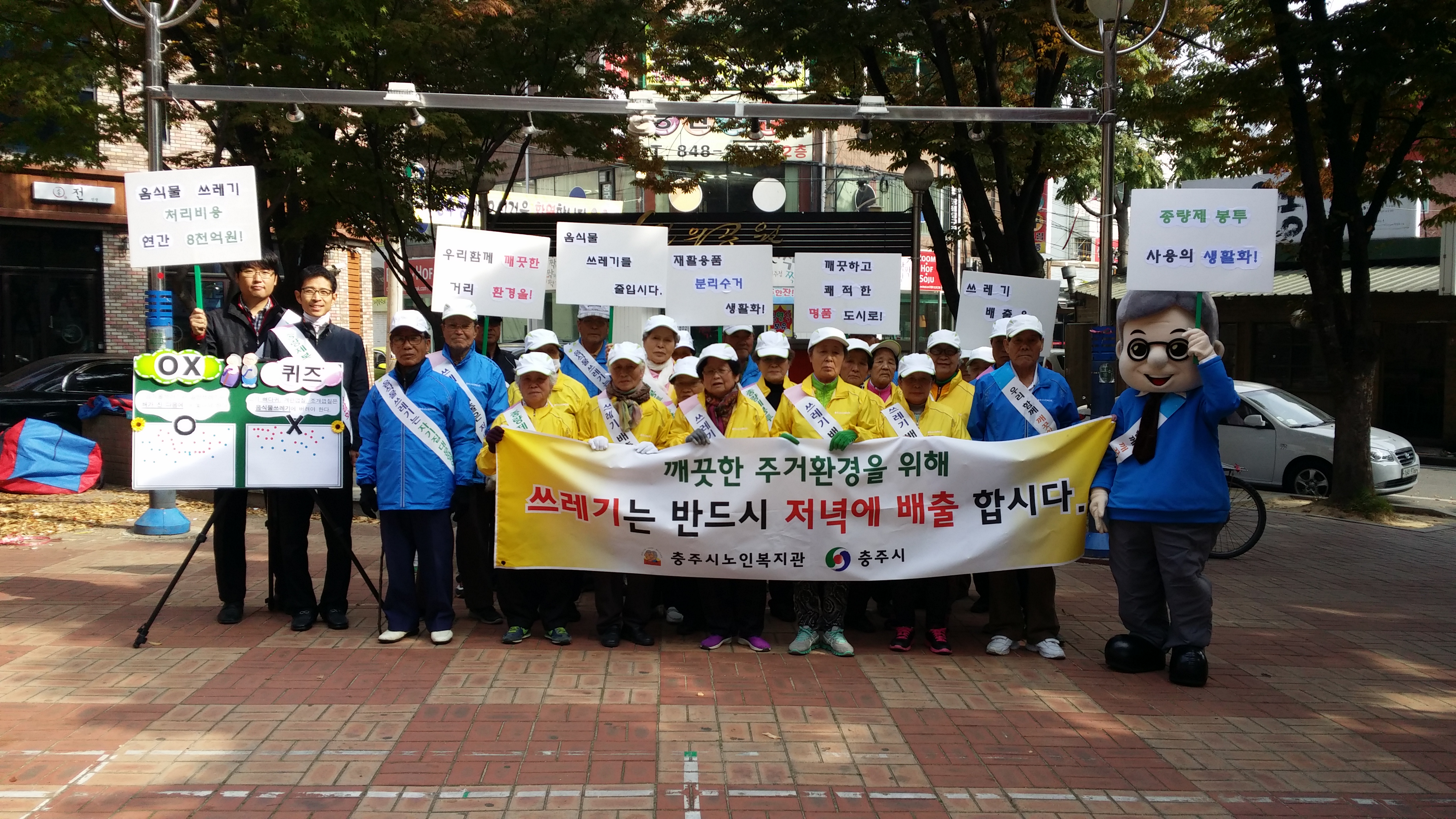 충주시노인복지관(관장 김웅)에서 운영하고 있는 노인일자리사업 중 ‘은빛환경지킴이사업단’참여 어르신들이 깨끗한 환경조성과 환경에 대한 시민의식 제고를 위해 10월 28일 연수상가를 중심으로 거리 캠페인과 홍보활동을 실시하였다.