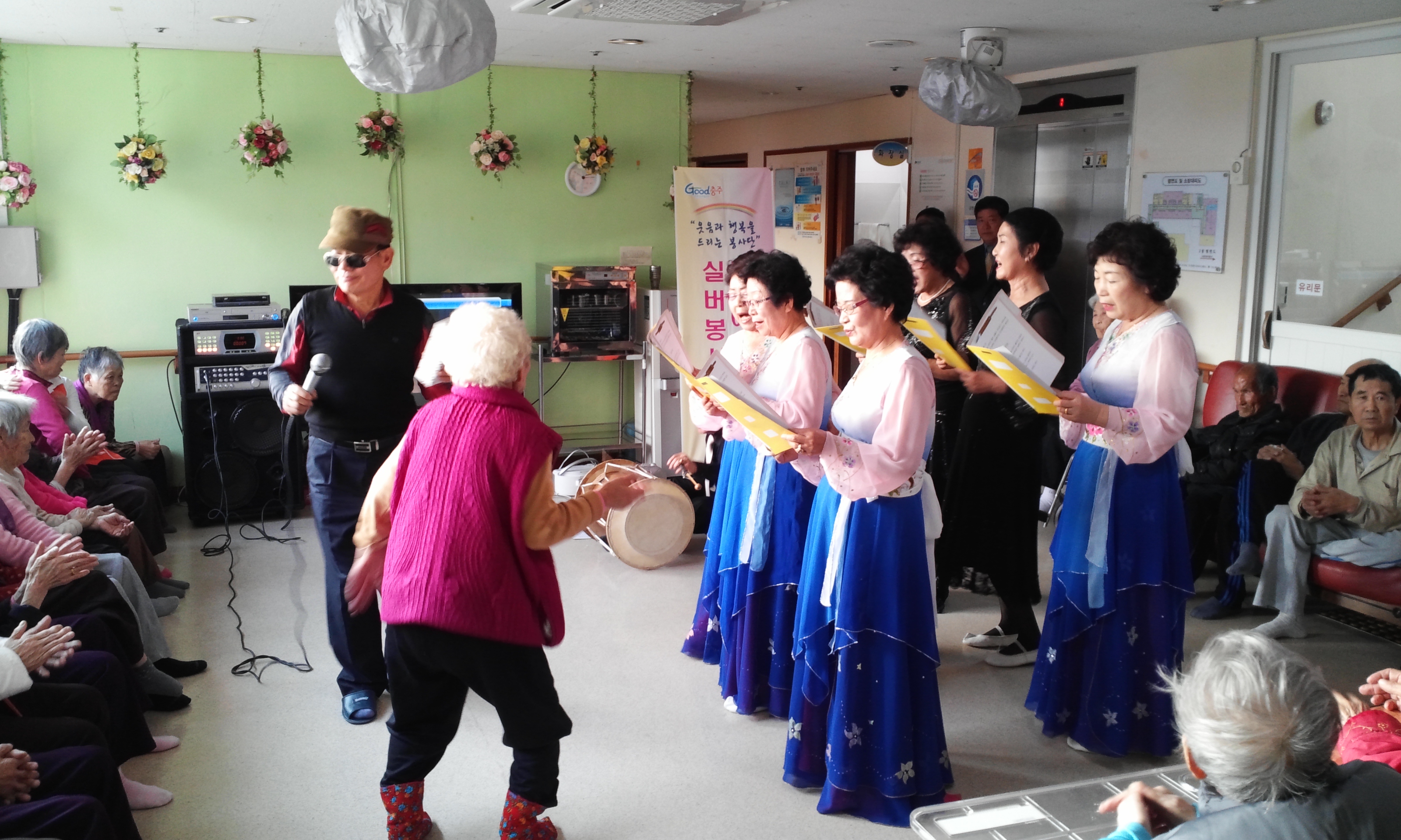장수춤, 댄스스포츠, 민요, 하모니카, 섹소폰 공연을 통하여 문화공연을 접하기 어려운 어르신들께 즐거운 시간을 보낼 수 있도록 해드렸습니다.
