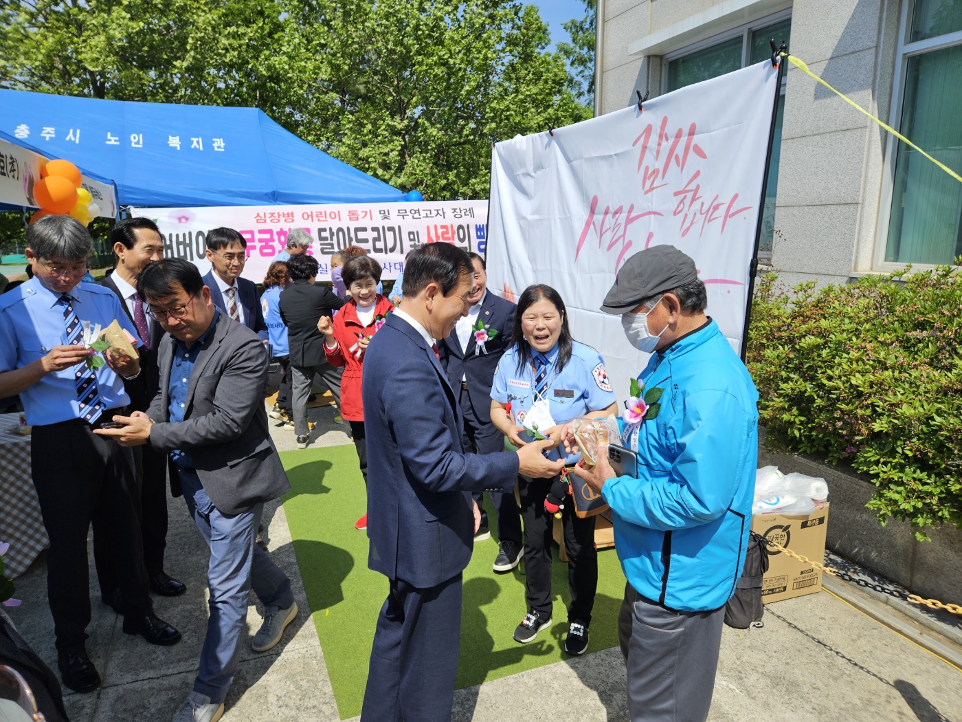 이번 행사는 지역 주민들과 함께하는 다양한 프로그램으로 구성되었습니다. 충주시성악연구회 4(four)컬러의 품격 있는 성악공연을 시작으로 노인인식 개선을 위한 다양한 체험부스도 운영되었습니다. 또한 복지관을 이용하는 모든 어르신들 가슴에 카네이션을 달아드리며 감사의 마음을 전했습니다.