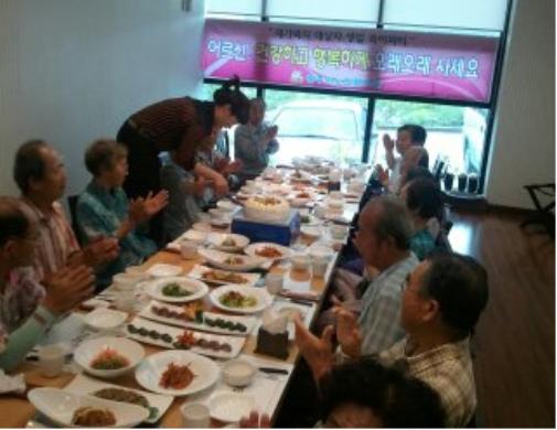 이 행사는 충주시 연수동 문화당 식당 대표(유시웅)님의 후원으로 올해로 3년째 상,하반기로 행사를 진행하고 있습니다. 외부활동이 적은 재가복지 대상 어르신들은 이 행사로 인해 매우 즐거워 하시며 푸짐하고 고급스런 맛난 음식을 드시며 만족해 하셨습니다. 지속적으로 행사를 위해 협조해 주시는 문화당 식당 대표(유시웅)님께 진심으로 감사드립니다.