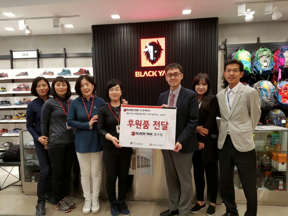 등산용품 전문 브랜드 블랙야크 충주점(대표 소민석)은 5월 어버이날을 맞아 지역 내 독거어르신에게 효(孝)박스를 후원하고자 충주시노인복지관(관장 김웅)과 전달식을 가졌다.