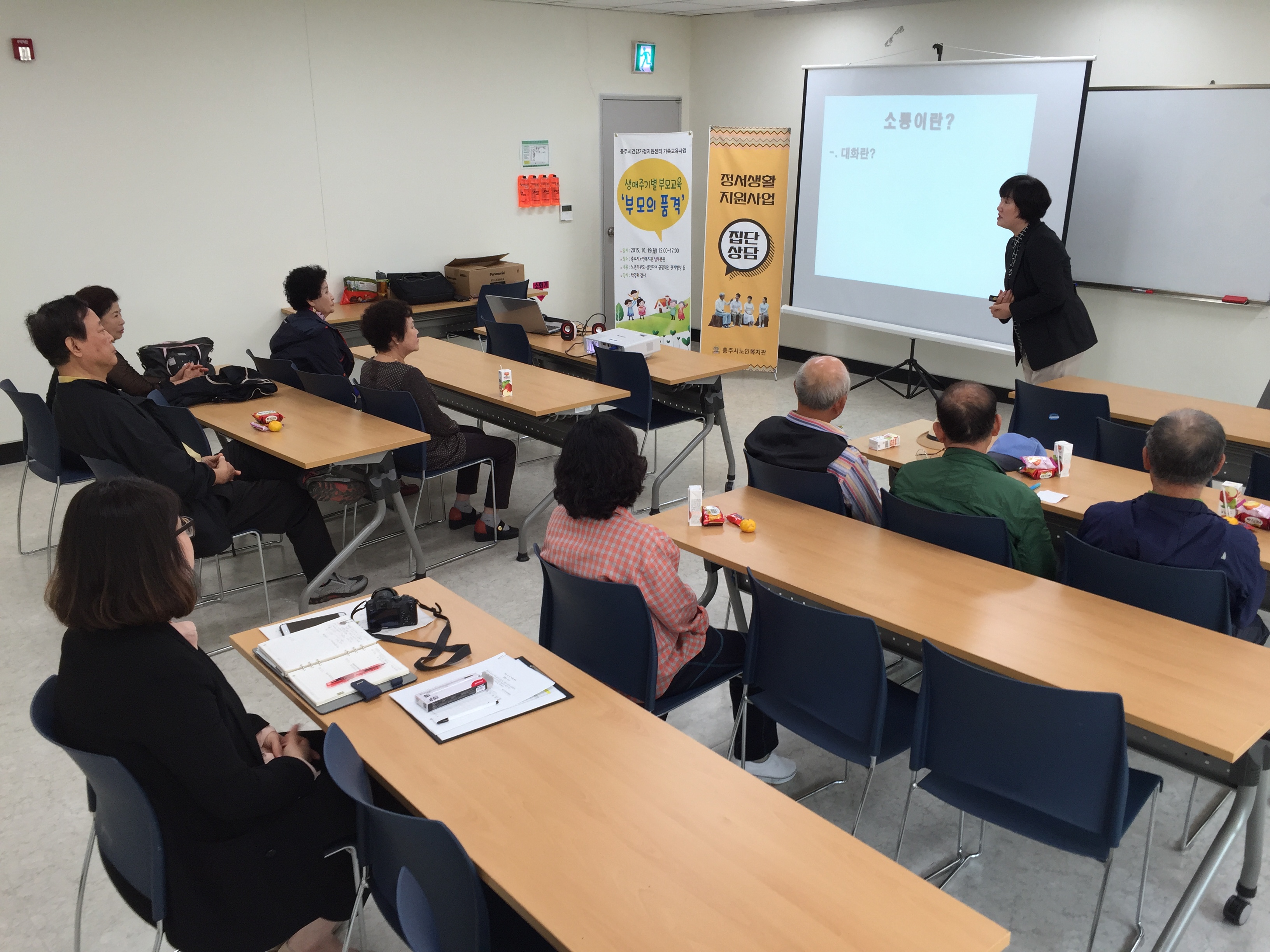 10월 19일(월) '노년기 부모-성인자녀 간의 긍정적 관계향상'에 대한 주제와 12월 11일(금) '노년기건강한 성생활'에 대한 주제로 복지관 이용 어르신 22명을 대상으로 집단상담을 실시하였습니다.
