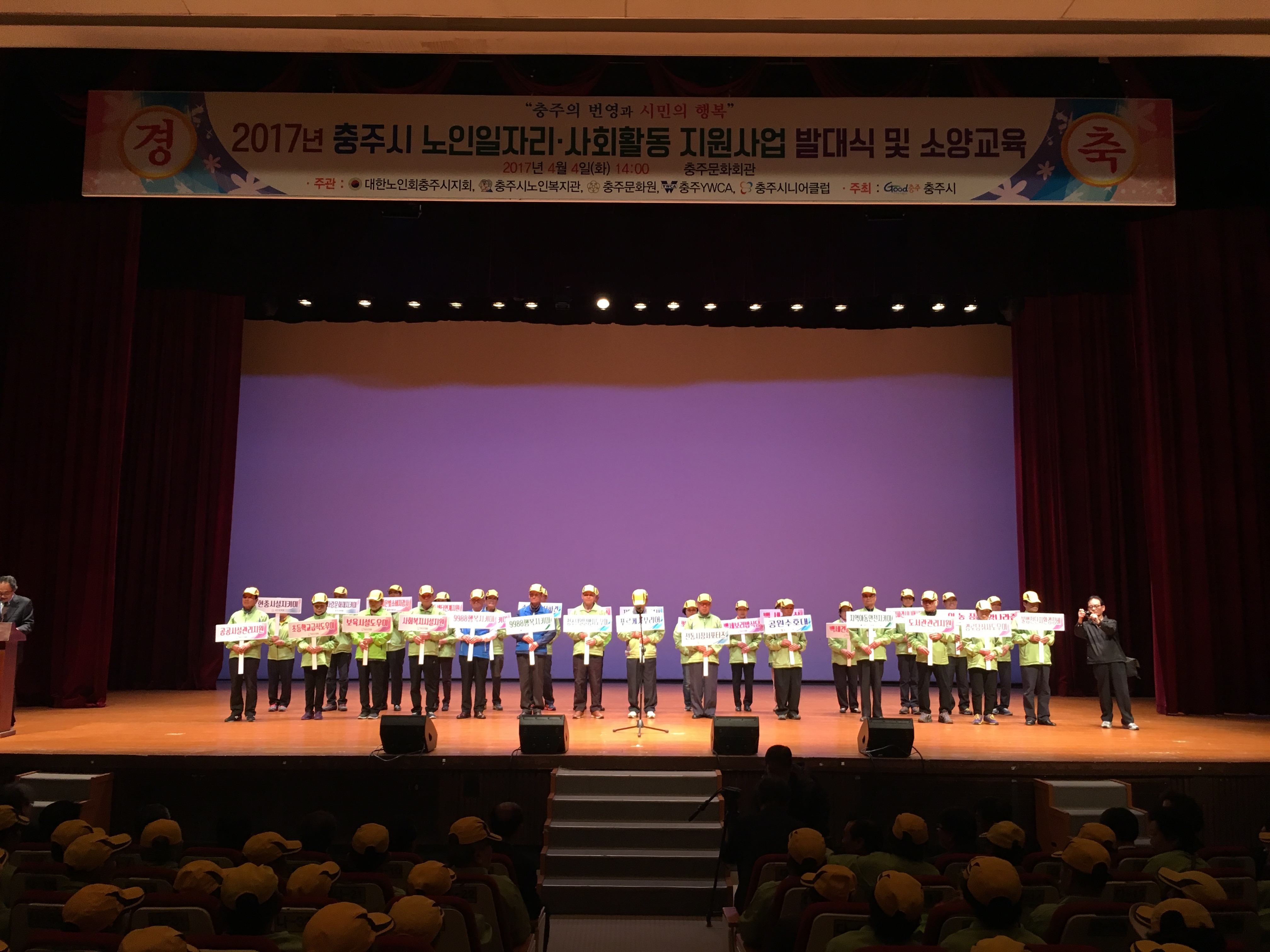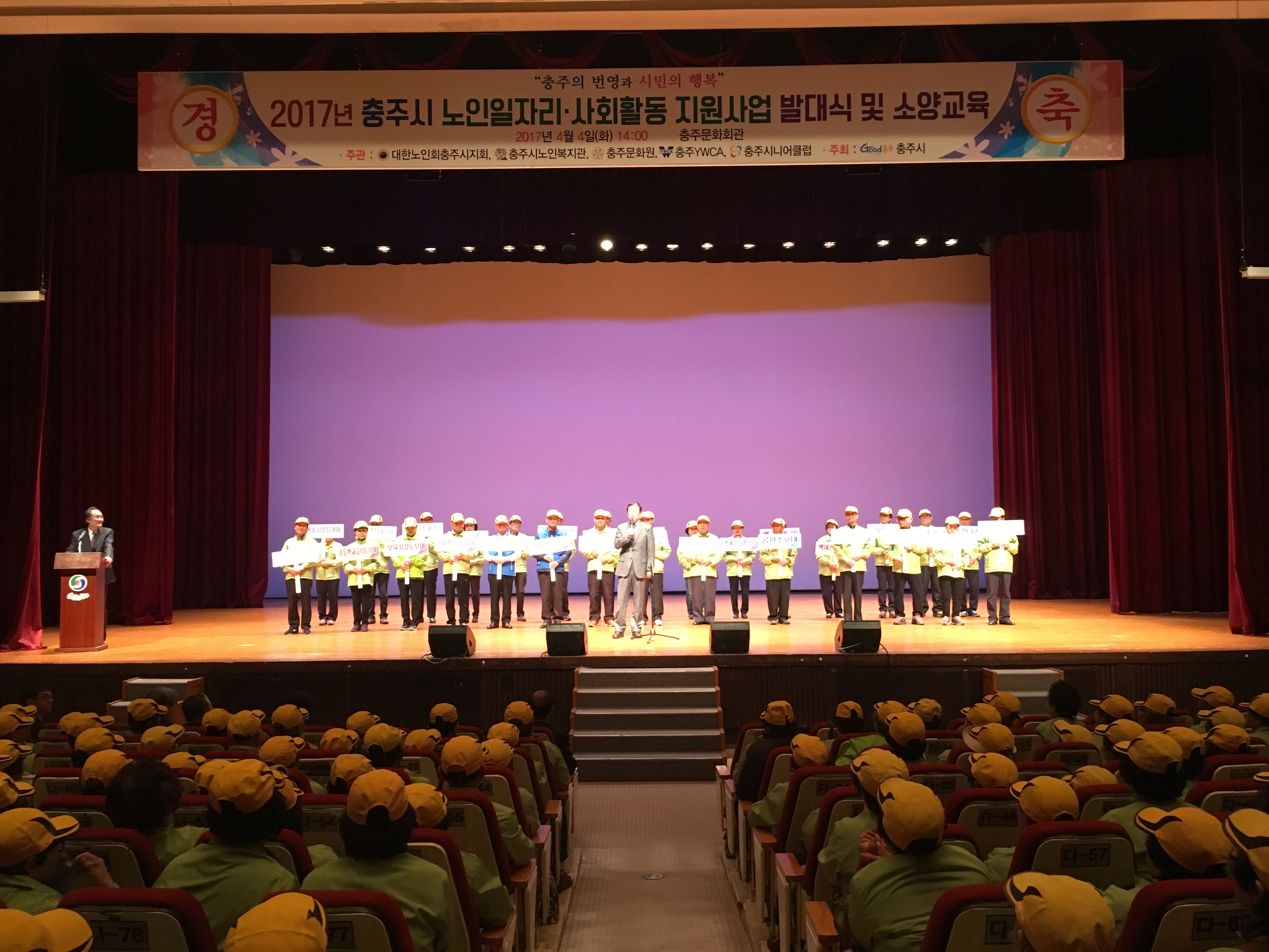 4월 4일 충주문화회관에서 1000여 명의 사업 참여자가 참석한 가운데 2017년 노인일자리 및 사회활동 지원사업 발대식 행사를 가졌다.