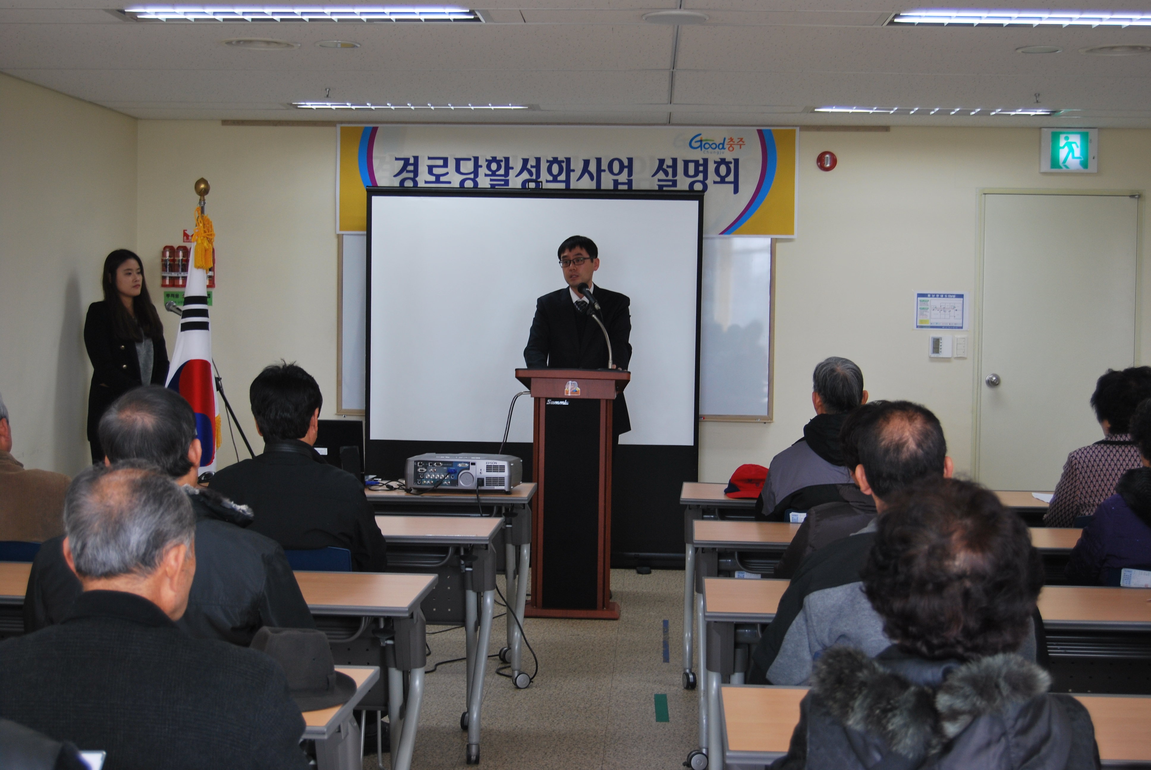 충주시 선정 9개소(세성3리경로당, 화치경로당, 창동경로당, 교촌경로당, 지현경로당, 은혜경로당, 문화경로당, 사직산경로당, 부익주택경로당) 임원분들을 모시고 경로당활성화사업 설명회를 실시 하였습니다.