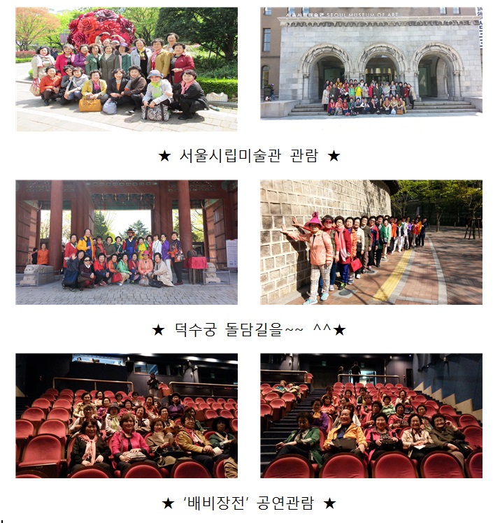 무용반(19명), 음악반(19명)이 함께 참여하는 현장학습으로, 덕수궁, 서울시립미술관 관람과 정동극장에서 '배비장전' 공연 관람하며 즐거운 시간을 가졌습니다!!