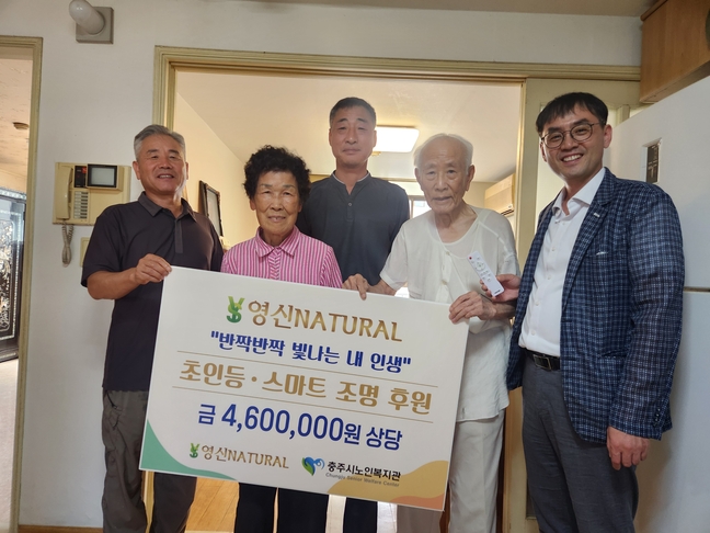 충주 영신내추럴은 어르신의 편리하고 안전한 주거환경개선을 위해 충주시노인복지관에 '보이는 초인등'과 '스마트 조명'(460만 원 상당)을 후원했다.