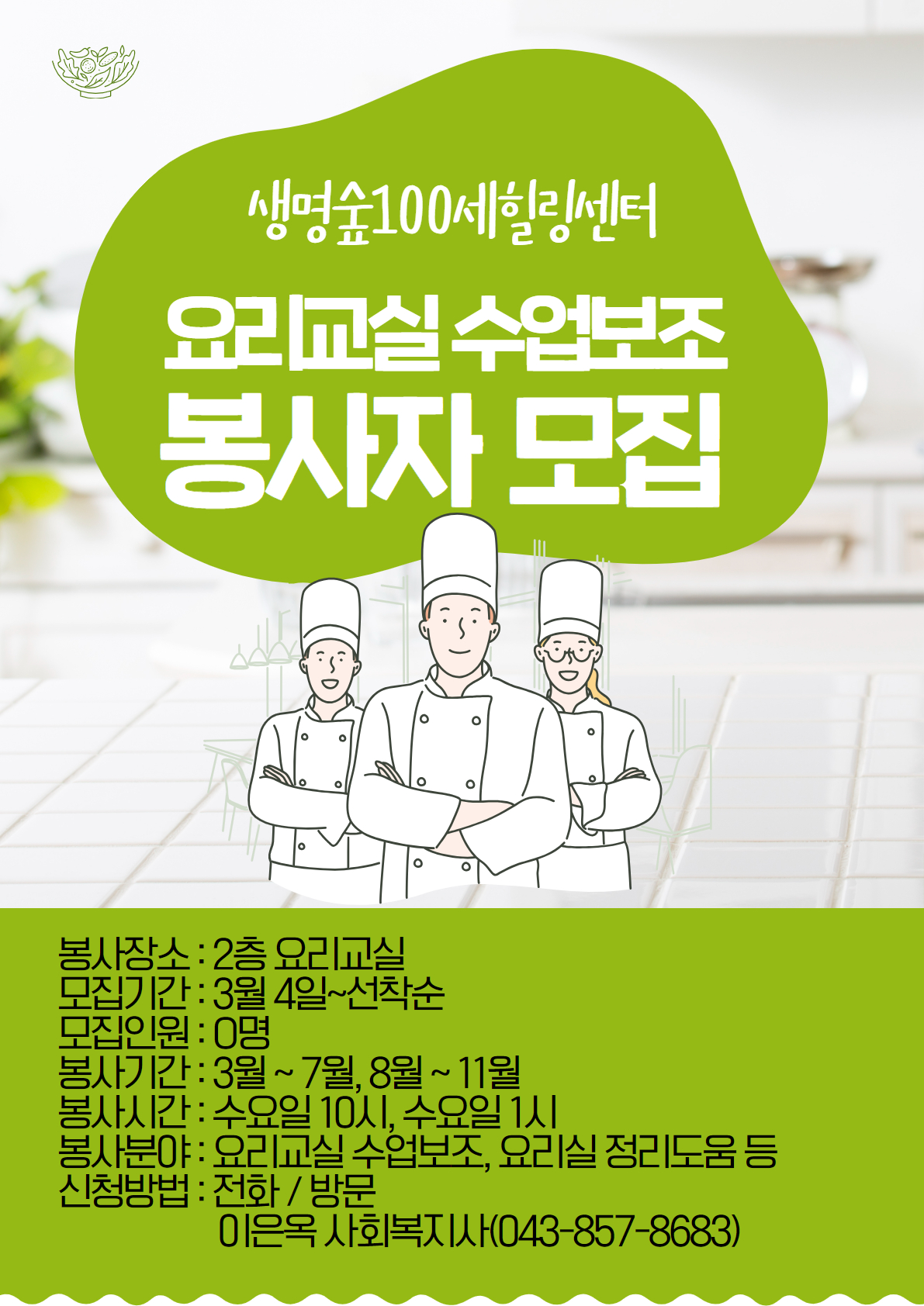 [본관]요리교실 봉사자 모집(생명숲100세힐링센터)