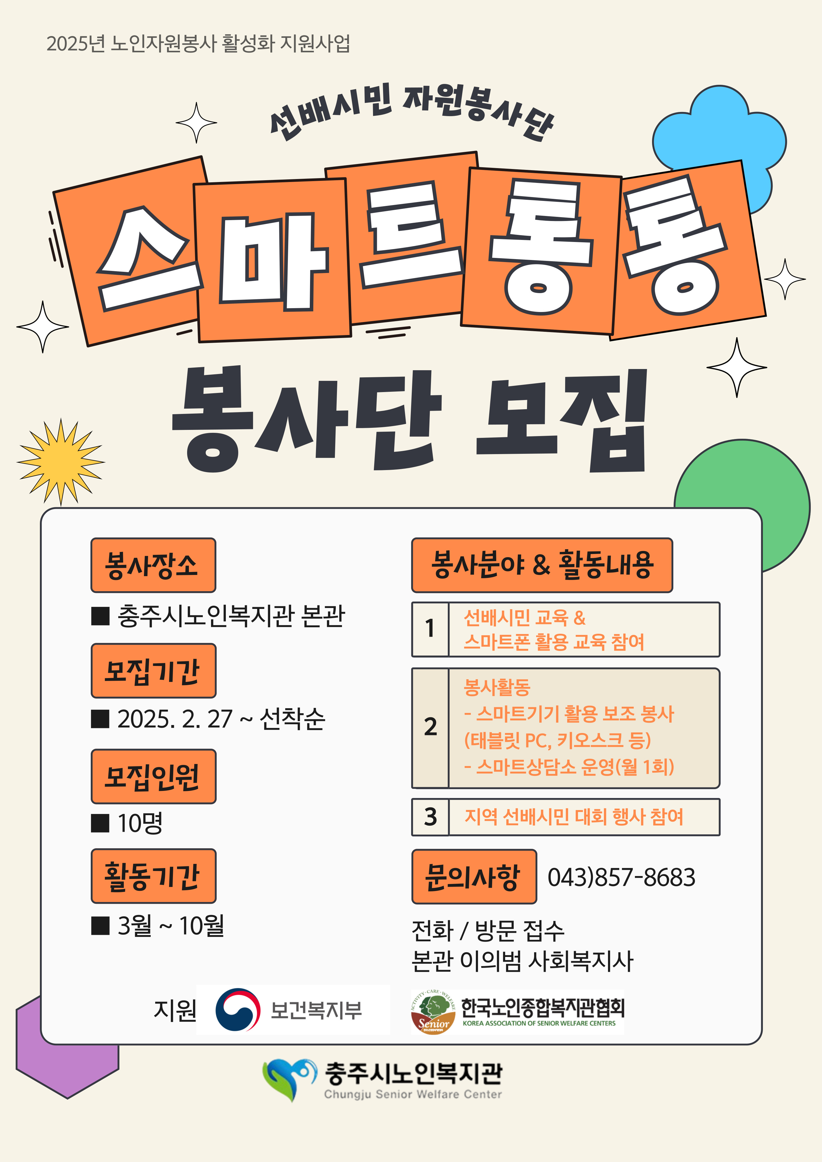 [본관] 2025 선배시민 자원봉사단 '스마트 통통 봉사단' 참여자 모집