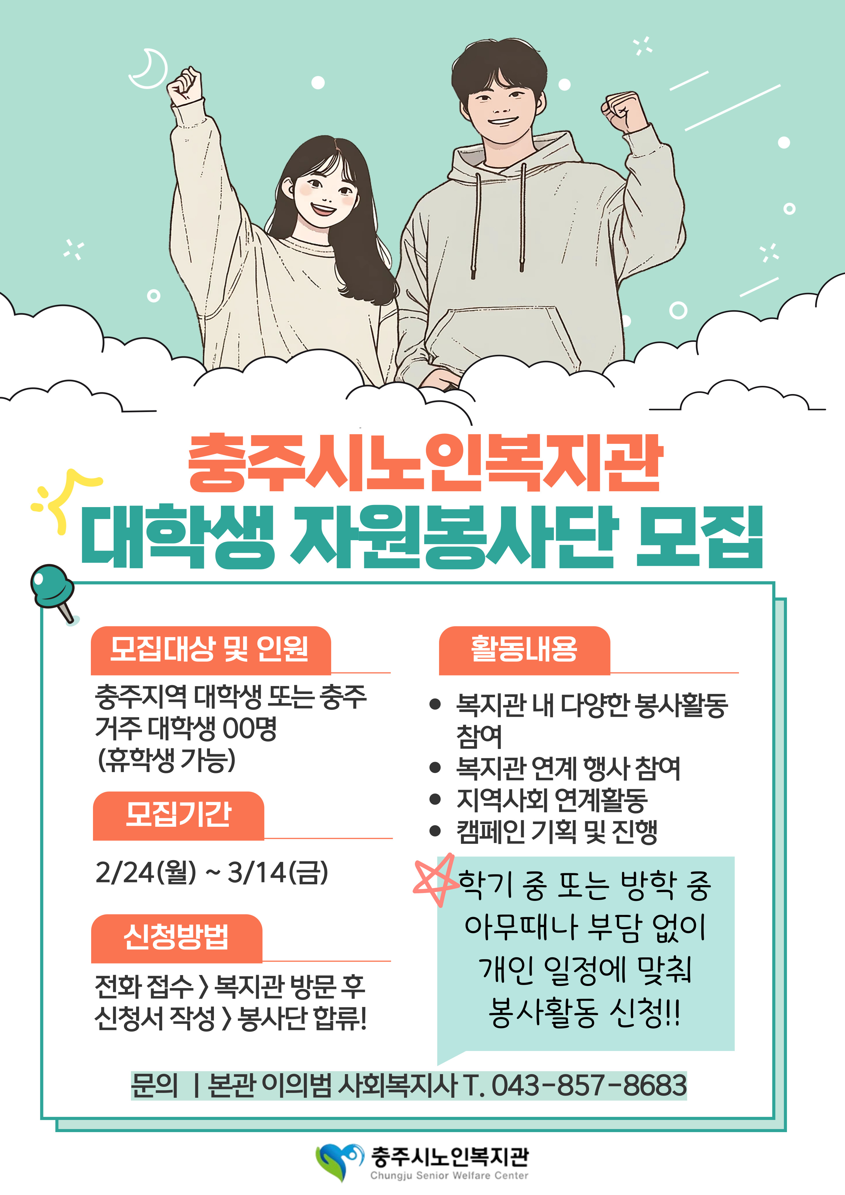 [본관] 충주시노인복지관 대학생 자원봉사단 모집
