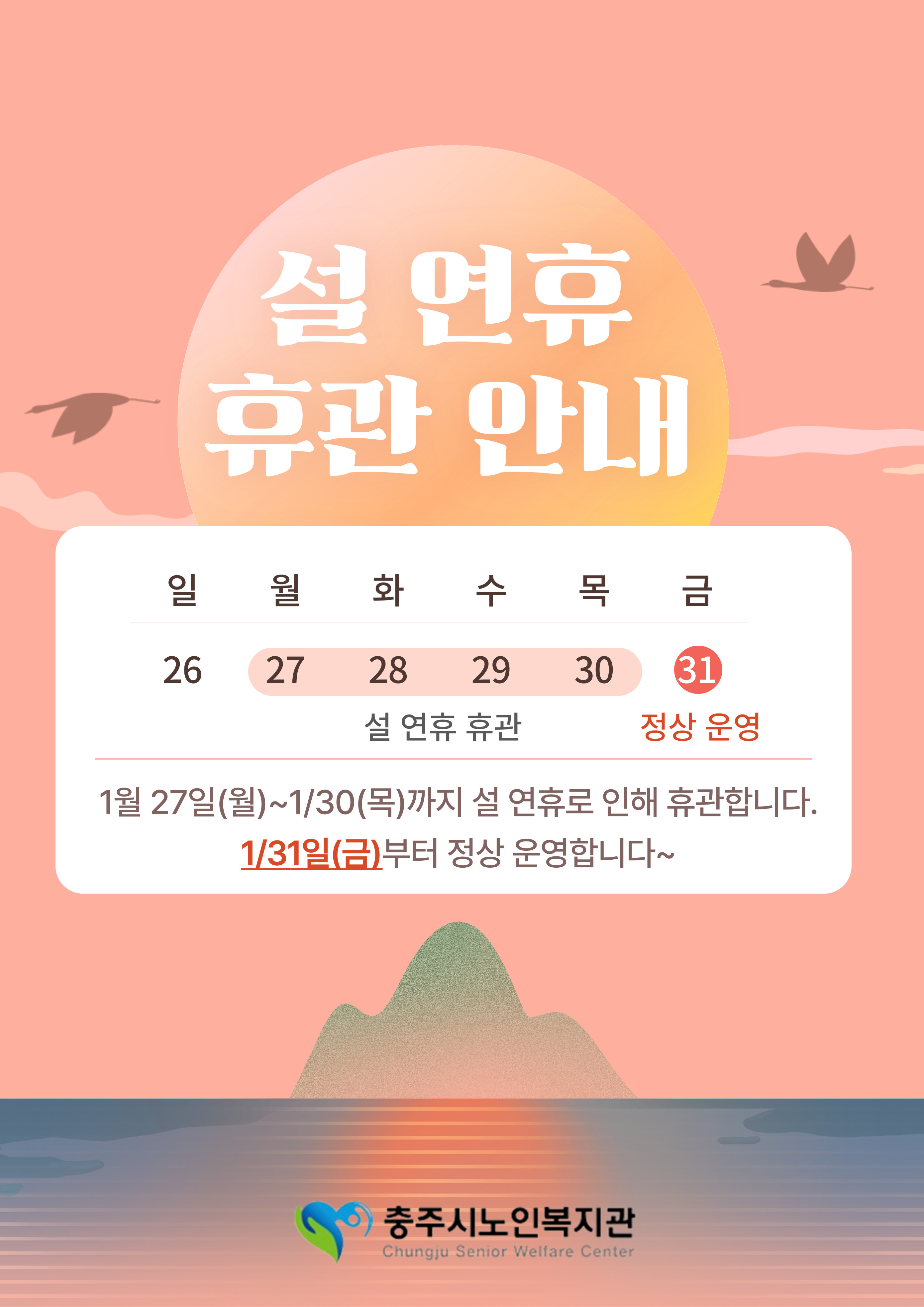 1월 설 연휴 휴관 안내