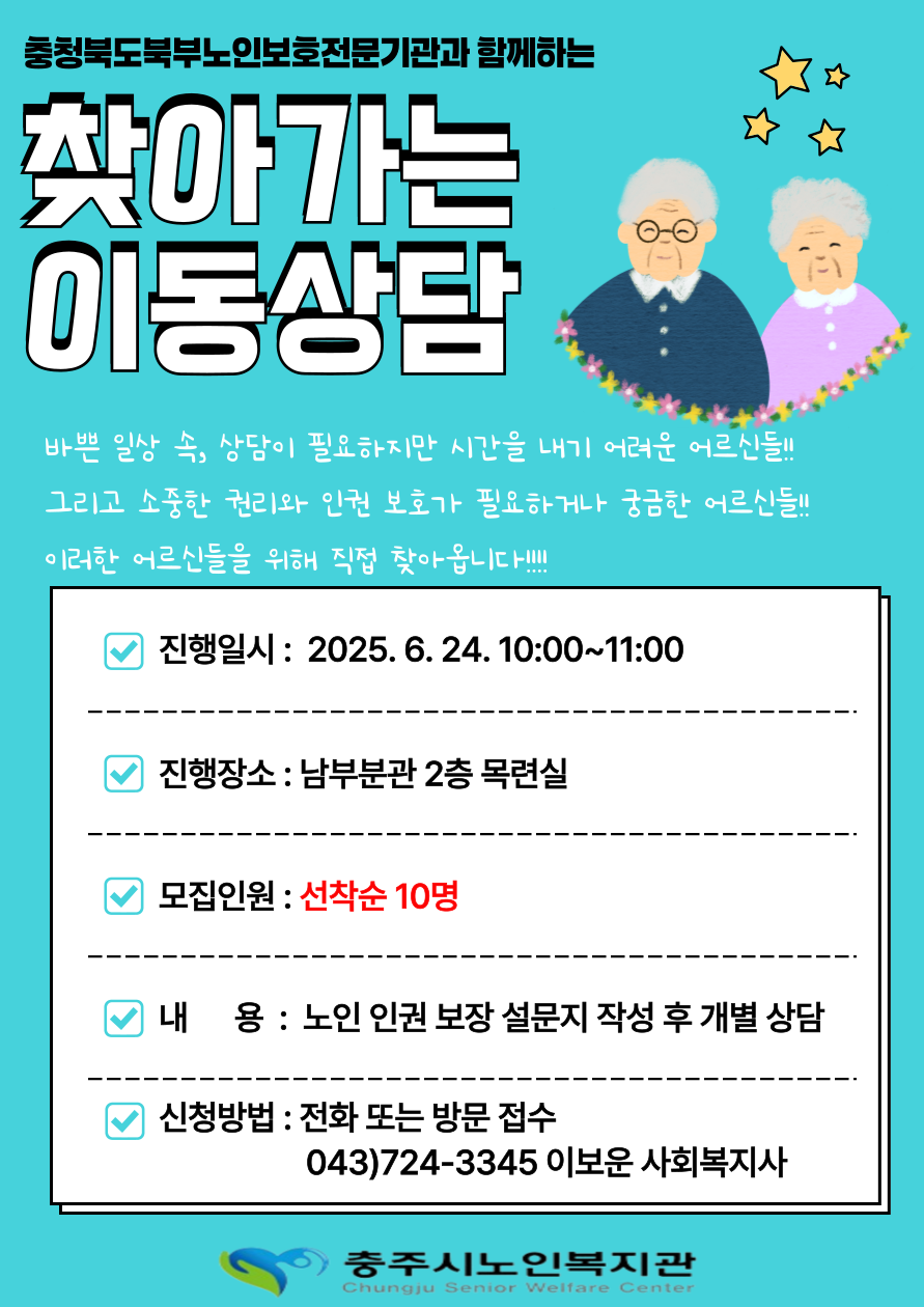 충청북도북부노인보호전문기관과 함께하는 '찾아가는 이동상담'