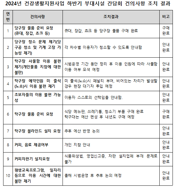 [남부분관] 하반기 부대시설 간담회 건의사항 조치결과