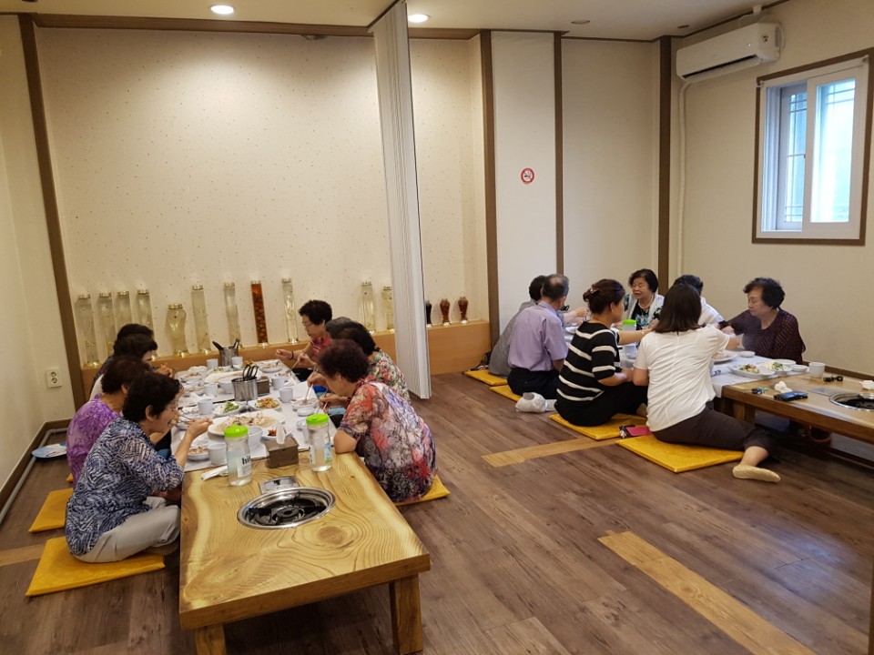 매월 말 숲속장수촌은 닭백숙을 이정동 전통묵밥(해뜰)에서는 묵밥을 20여명의 독거어르신들에게 후원하고 계십니다.