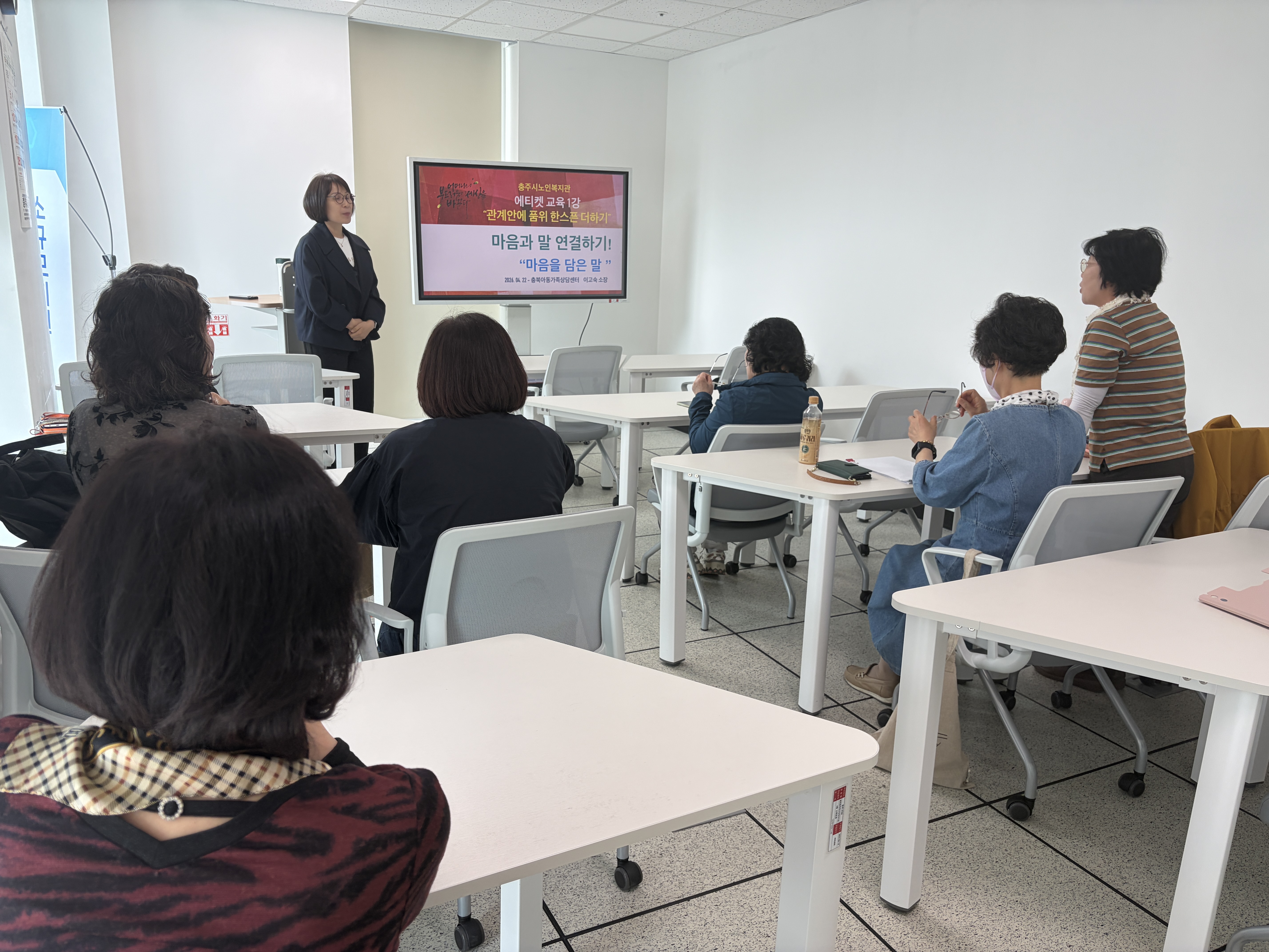 캠페인에 앞서 전문교육에 참여하였고 이번 교육을 통해 상대방을 배려하는 말과 태도의 중요성을 배우며, 따뜻한 마음으로 소통하는 자세를 다졌습니다.