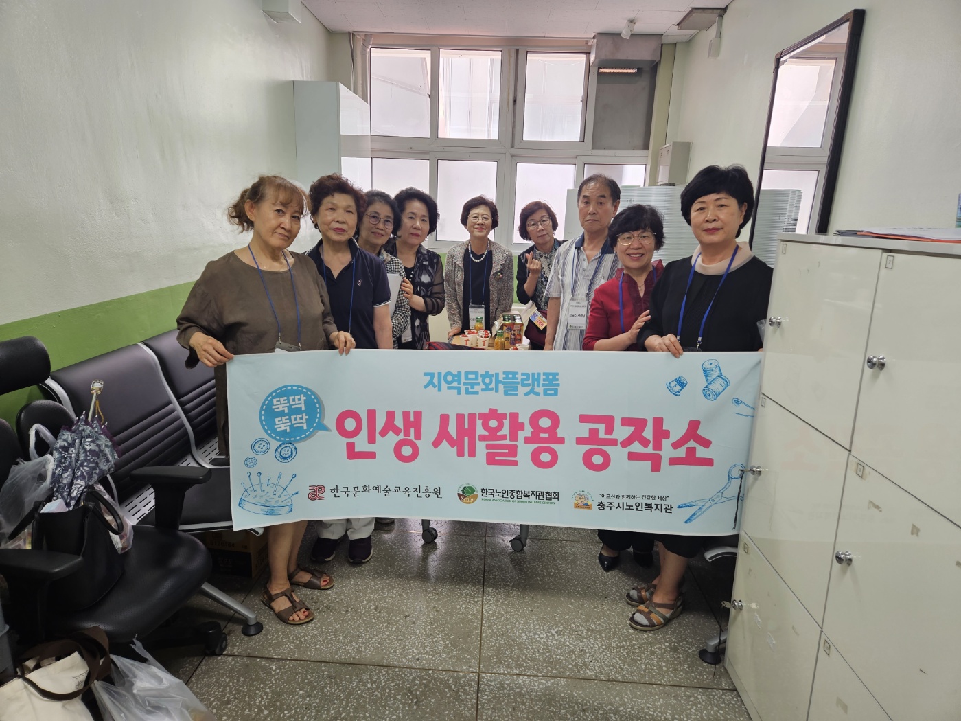 2023년 지역문화플랫폼 '뚝딱뚝딱 인생 새활용 공작소' 어르신들과 함께 업싸이클을 소재로 수업을 진행하였다.