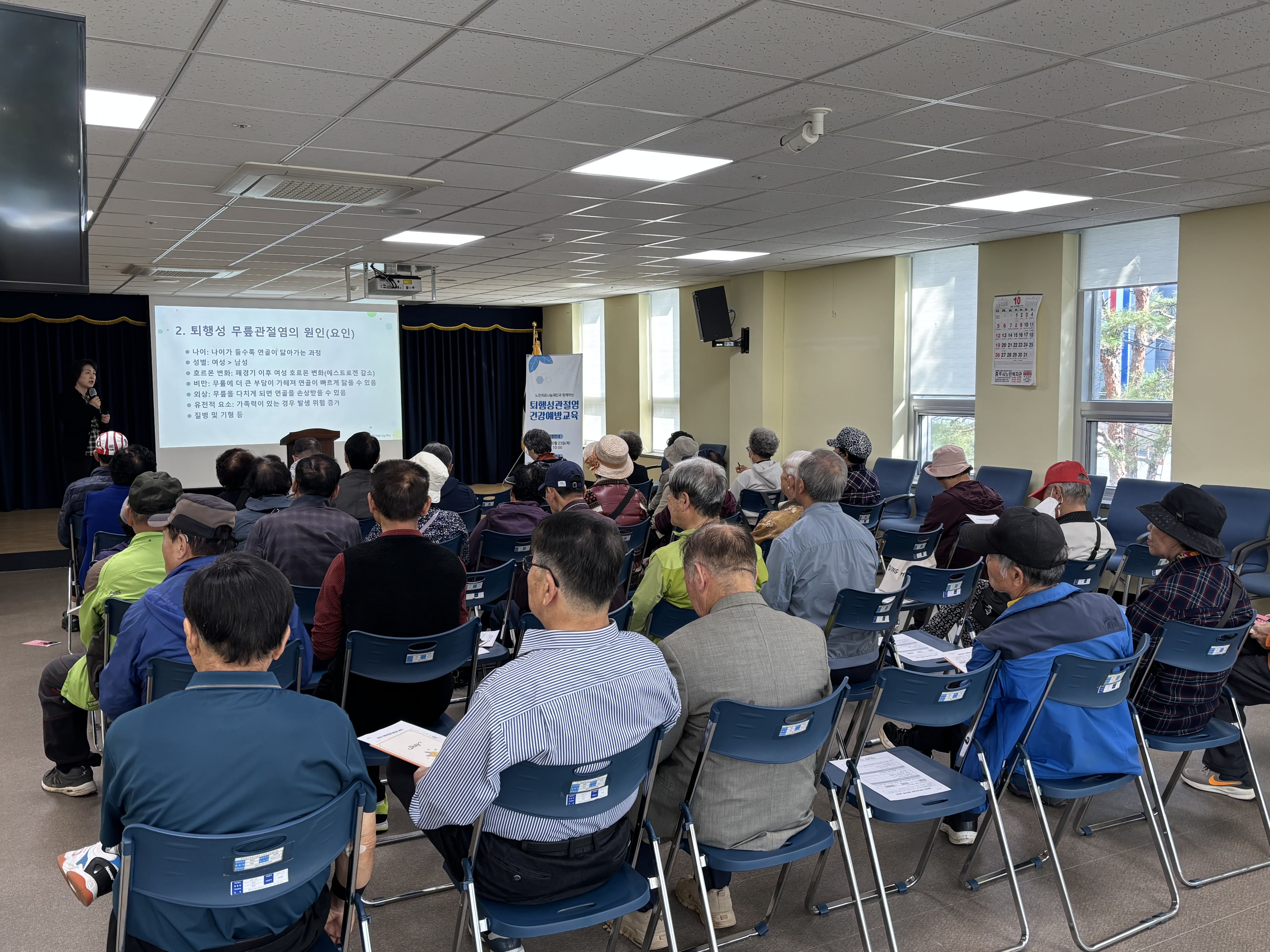 10/23(목), 본관에서는 노인의료나눔재단의 지원을 받아 '퇴행성관절염 예방교육'을 진행하였습니다~!