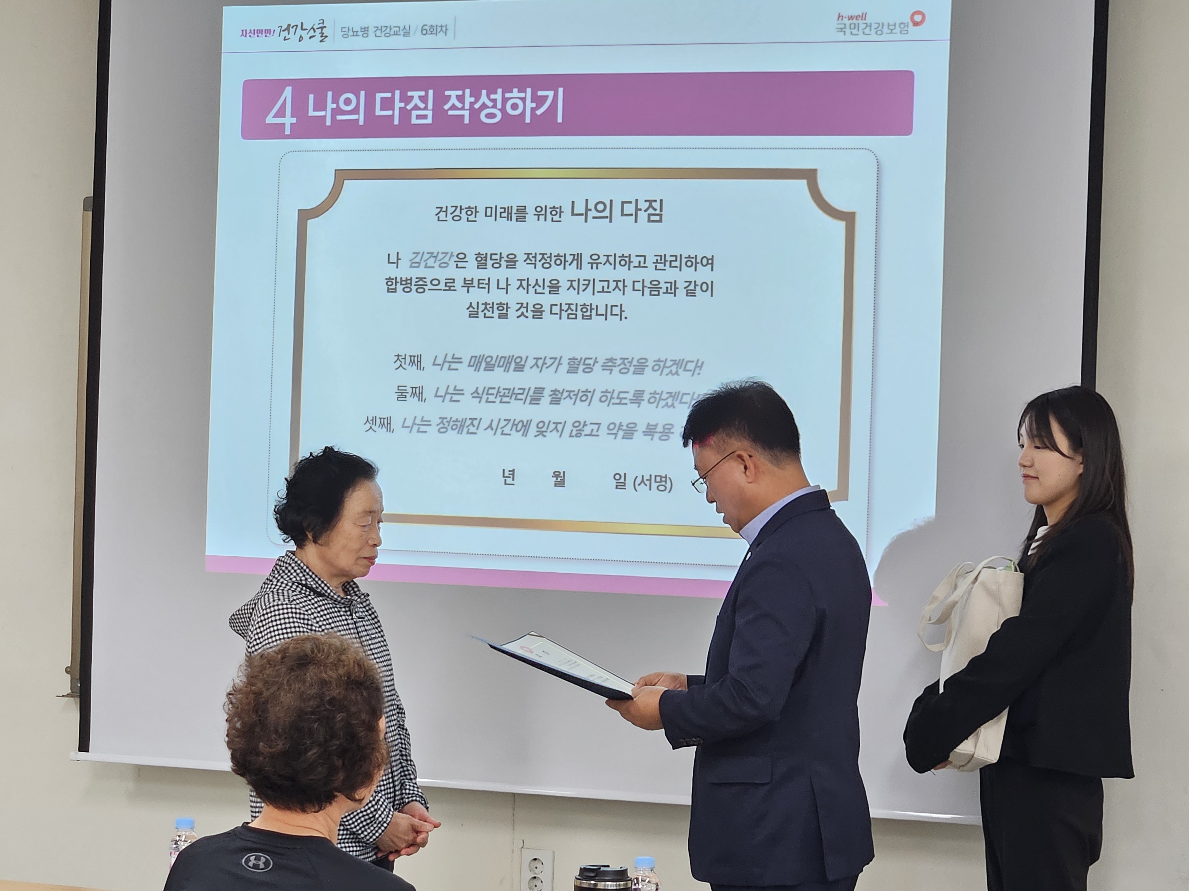 기존 당뇨병을 가지고 있는 어르신들을 대상으로 어르신들이 적극적으로 수업에 참여하고 당뇨에 대한 이해를 높이고 건강한 라이프스타일의 습관을 배울 수 있는 유익한 시간이였다.