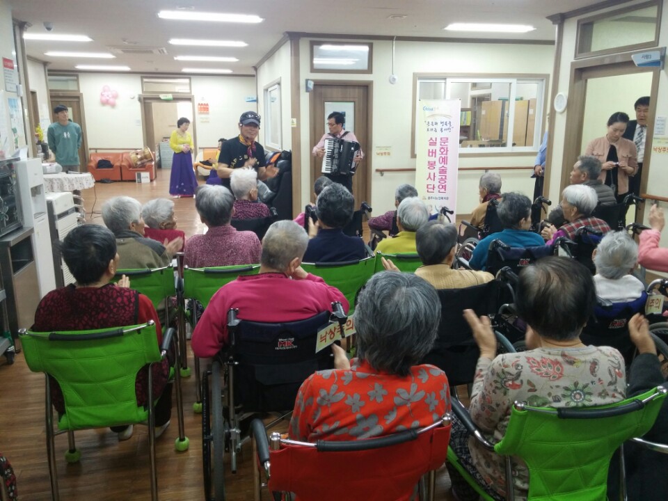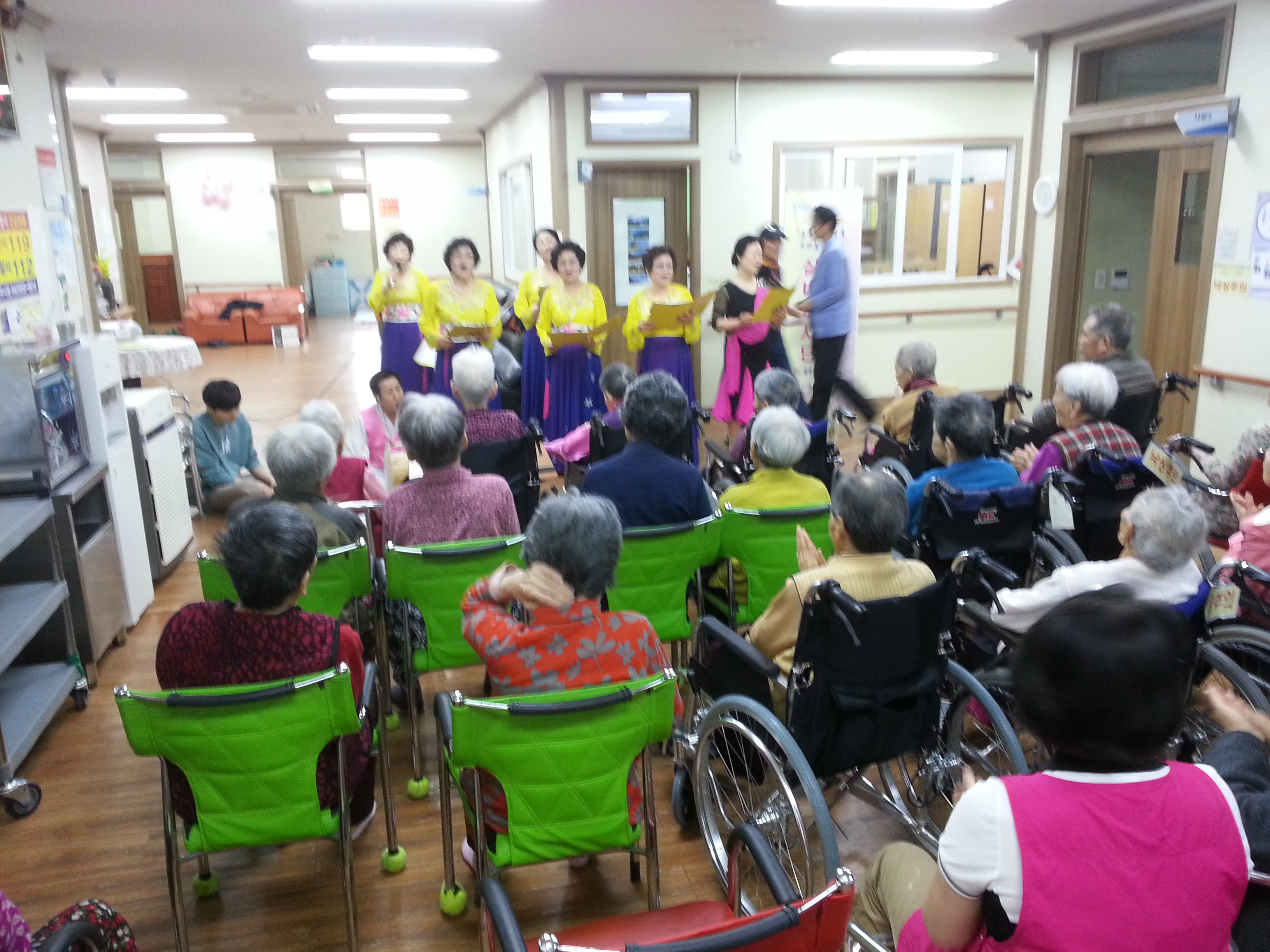 4월 14일 충주시노인복지관 문화예술공연팀은 충주요양원을 방문하여 그동안 복지관에서 갈고 닦은 공연 실력을 뽐내는 시간을 가졌습니다. 자원봉사자와 요양원 어르신이 하나되어 즐겁고 보람 있는 시간을 만들었습니다. 협조해주신 충주요양원 관계자 분들과 자원봉사자분들에게 감사합니다.