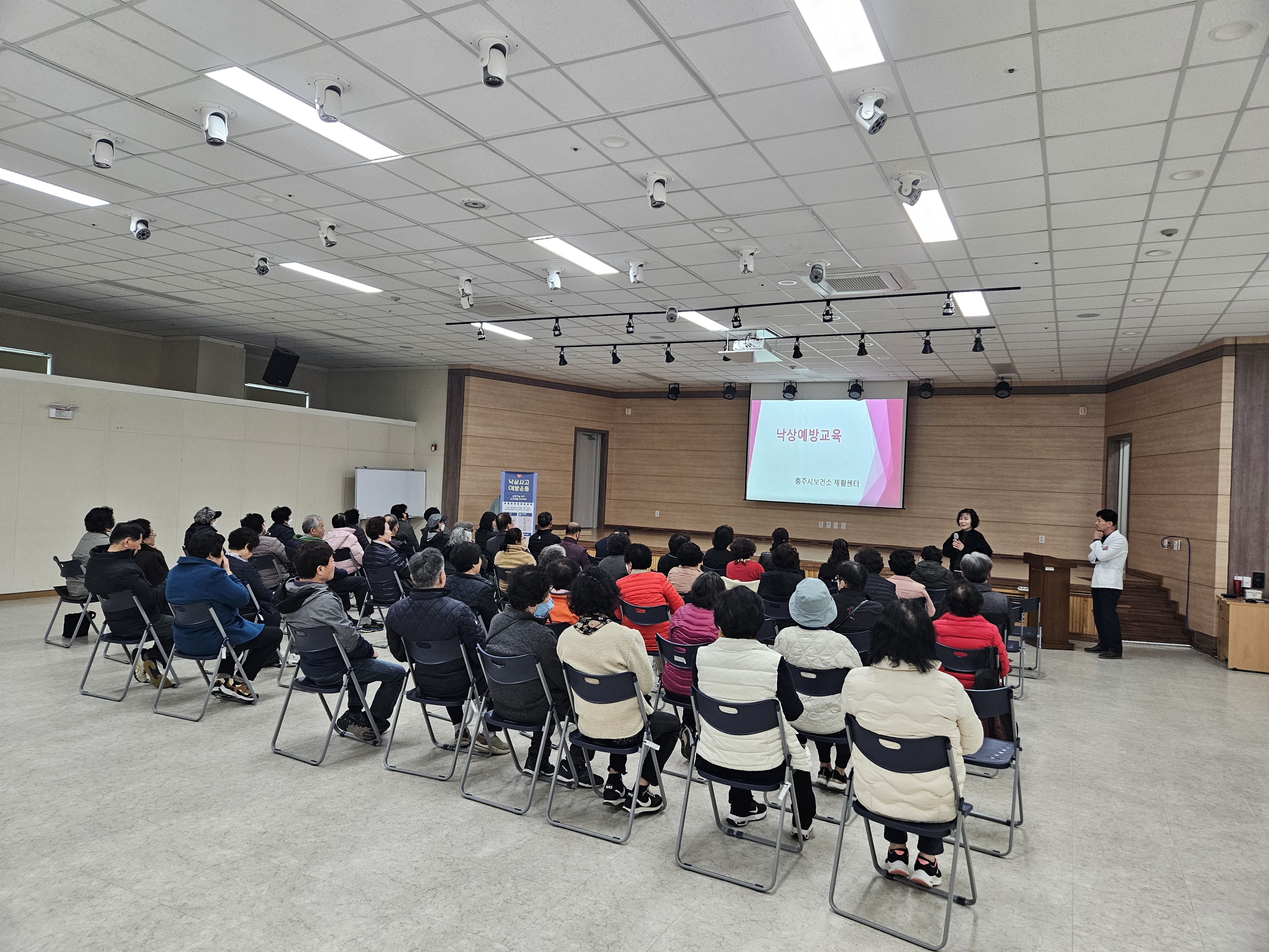 충주시 보건소와 연계하여 지난 3월 13.(수) 어르신들의 낙상사고 예방교육을 실시하였습니다.