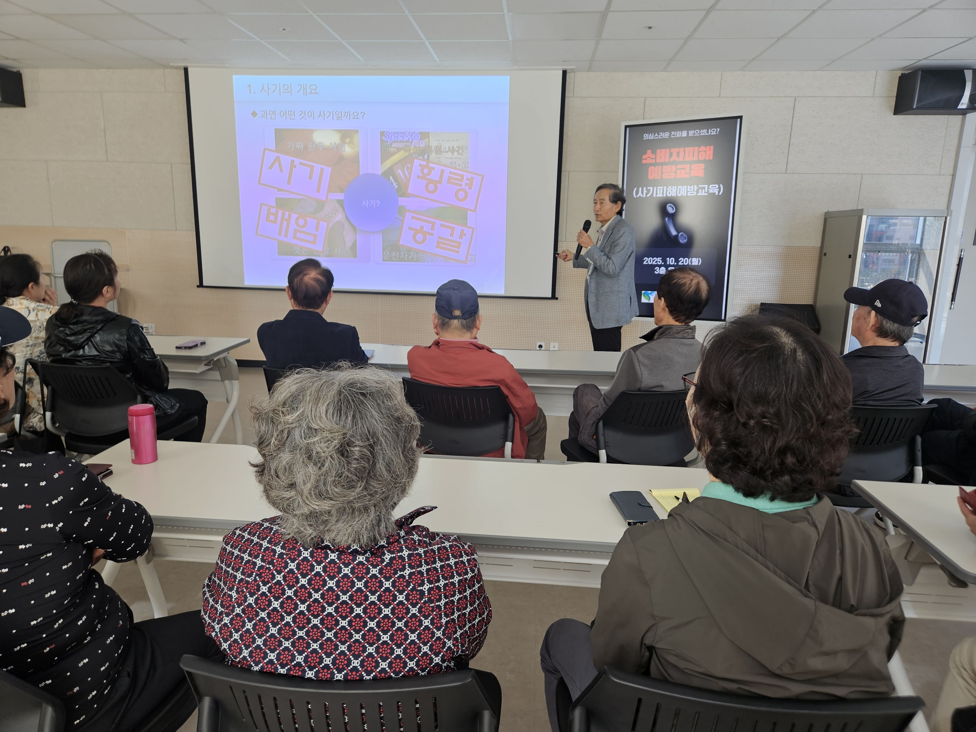 교육에서는 사기범죄의 유형과 예방법, 소비자 피해 발생 시 신고절차 및 대응방안 등을 안내하고 강조하였으며, 특히 뉴스 사례와 영상 자료를 활용한 시청각 교육에 어르신들의 관심과 호응이 높았습니다.