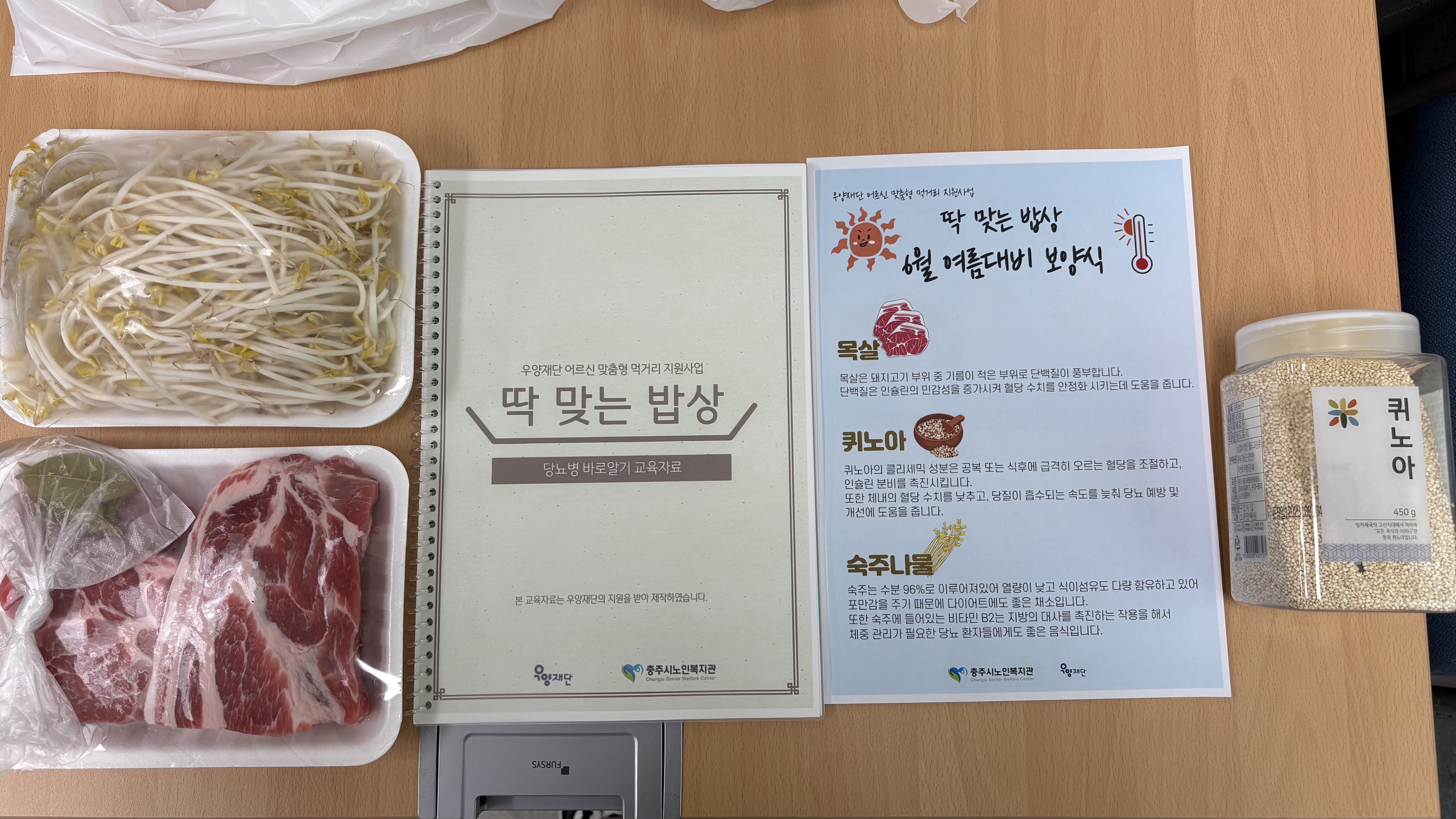 6월 요리교실은 '여름대비 보양식'이라는 주제로 저지방 고단백 음식인 목살수육을 만드는 시간을 가졌고, 추가로 버섯, 양파, 브로콜리 등 식재료를 제공하였습니다.