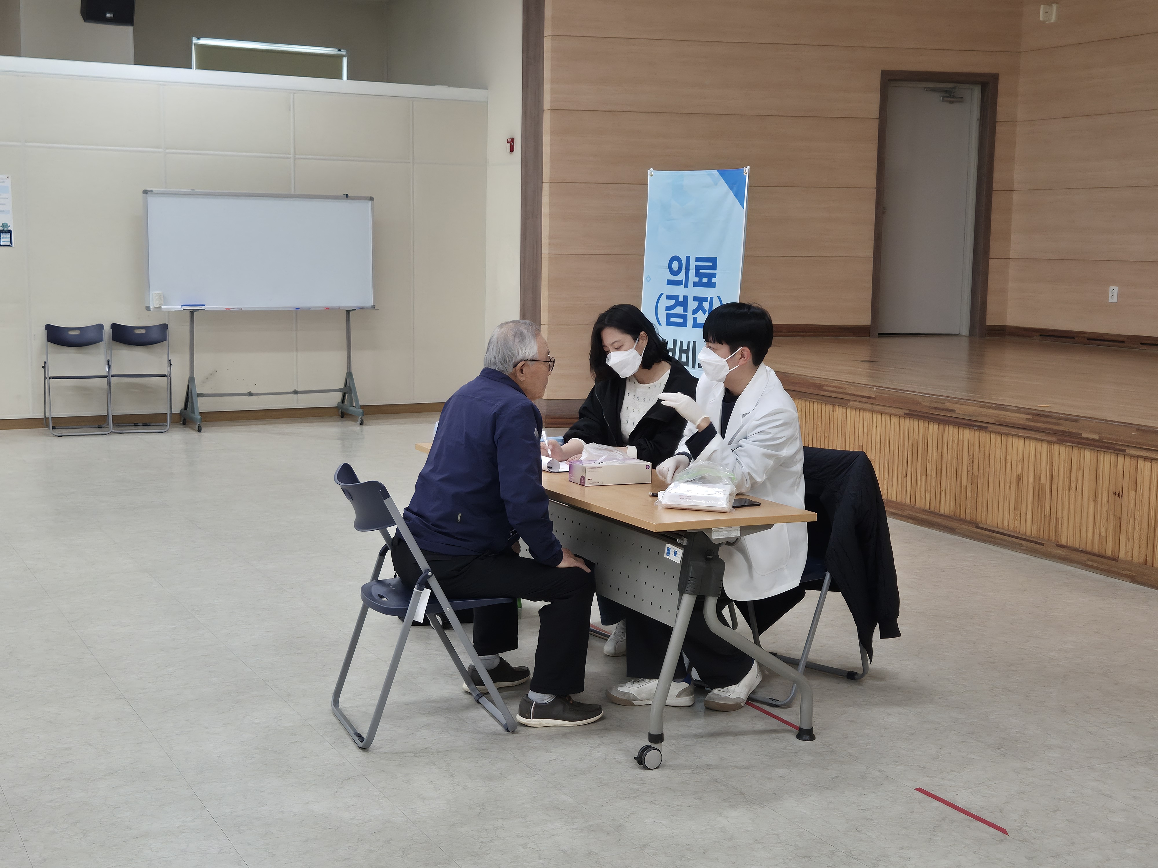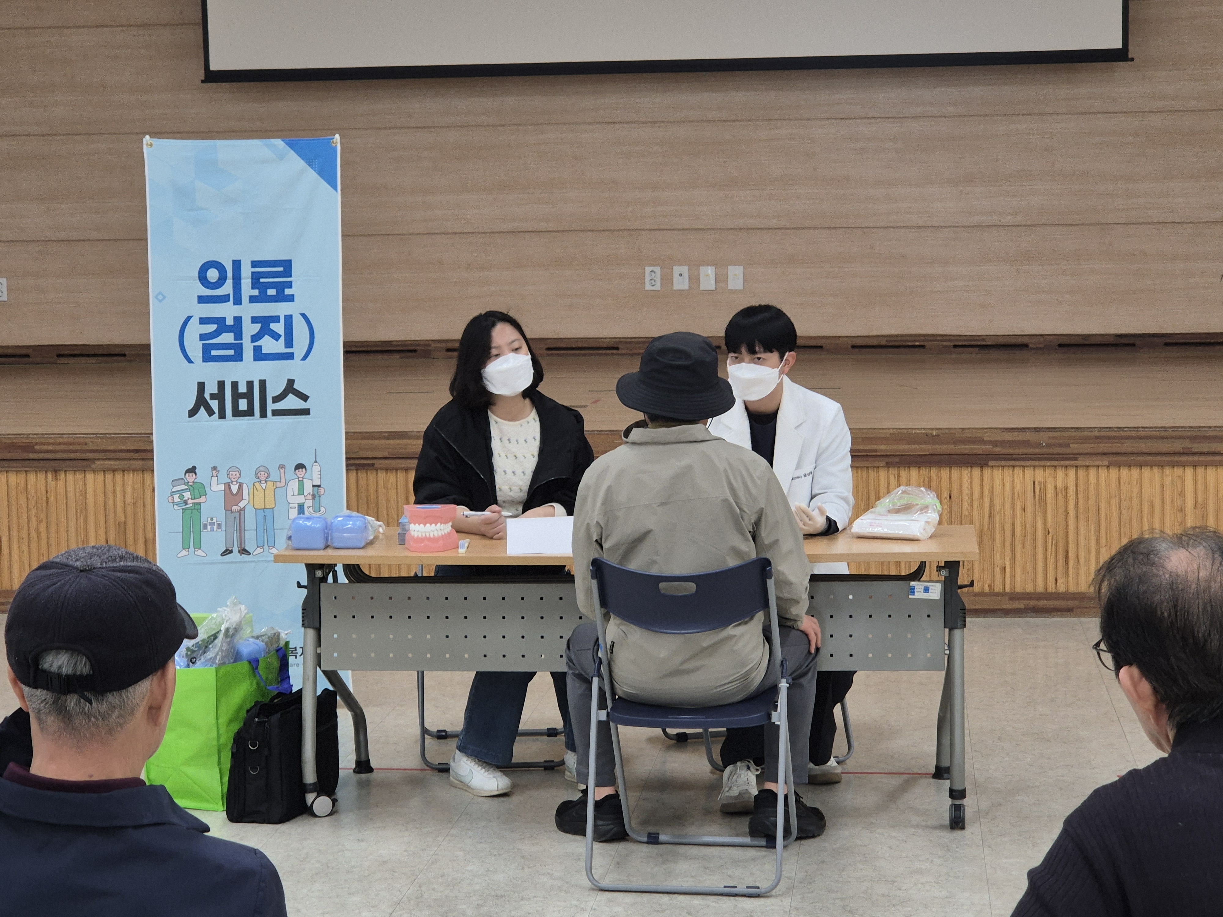 2층 강당에서 구강검진을 진행했습니다.