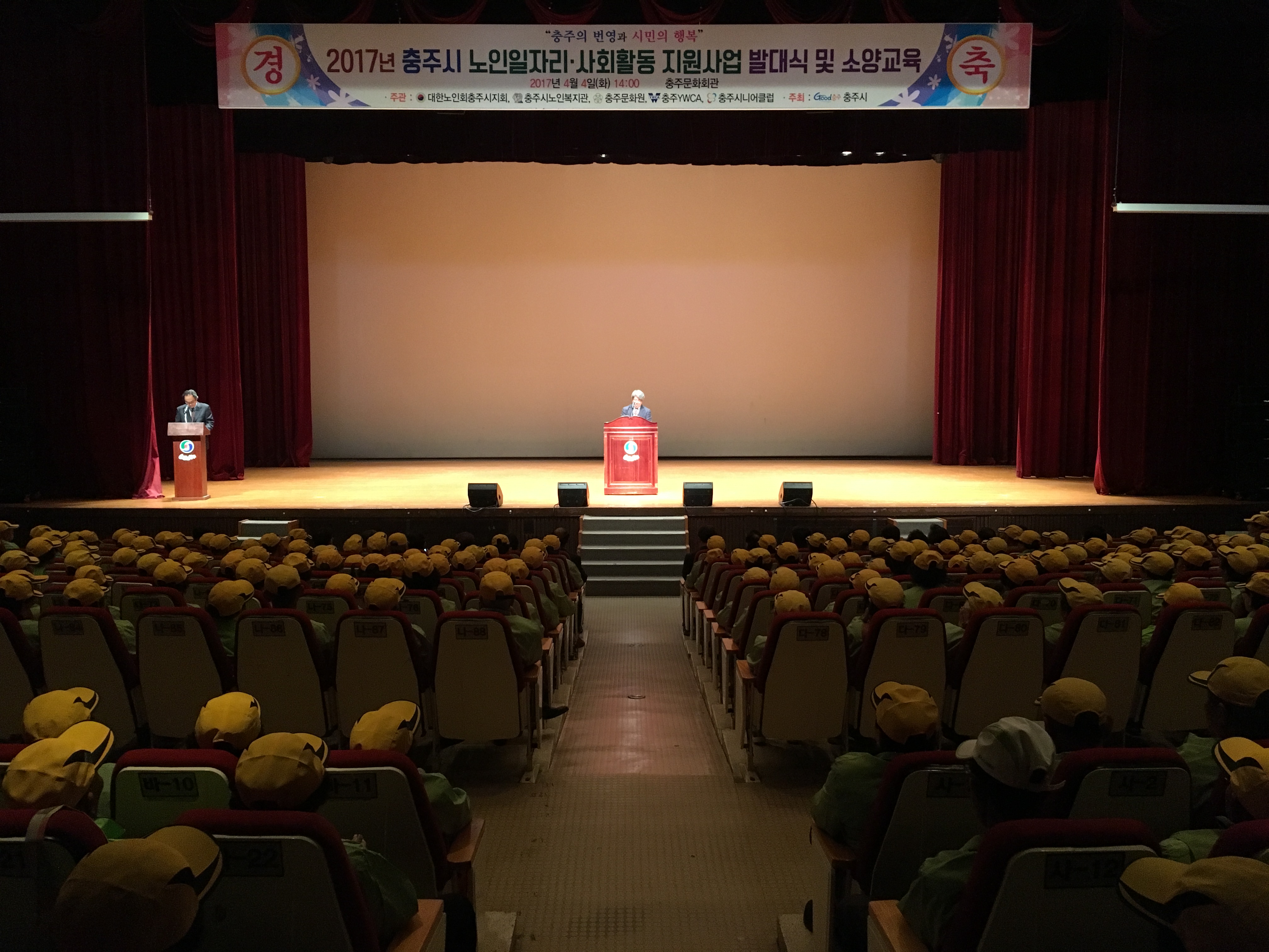 4월 4일 충주문화회관에서 1000여 명의 사업 참여자가 참석한 가운데 2017년 노인일자리 및 사회활동 지원사업 발대식 행사를 가졌다.
