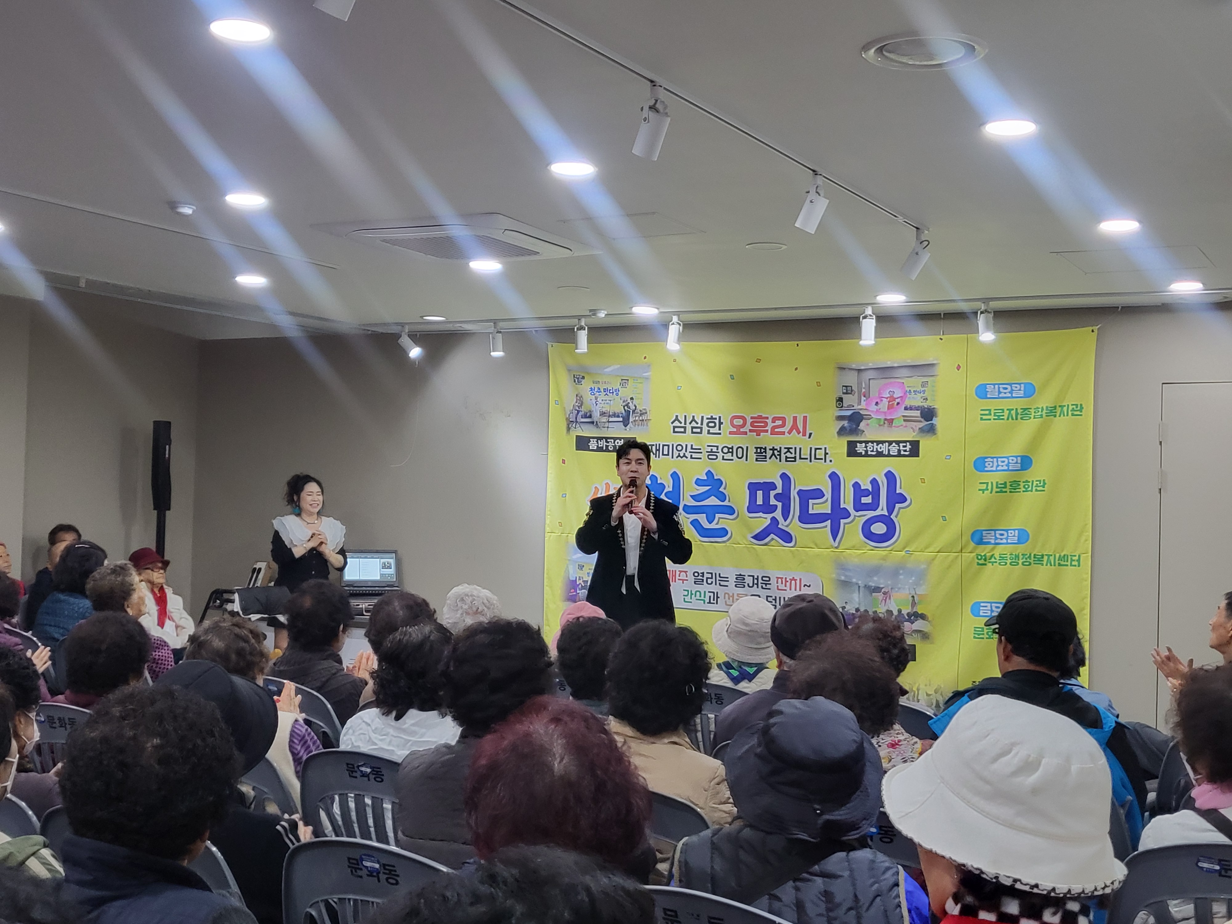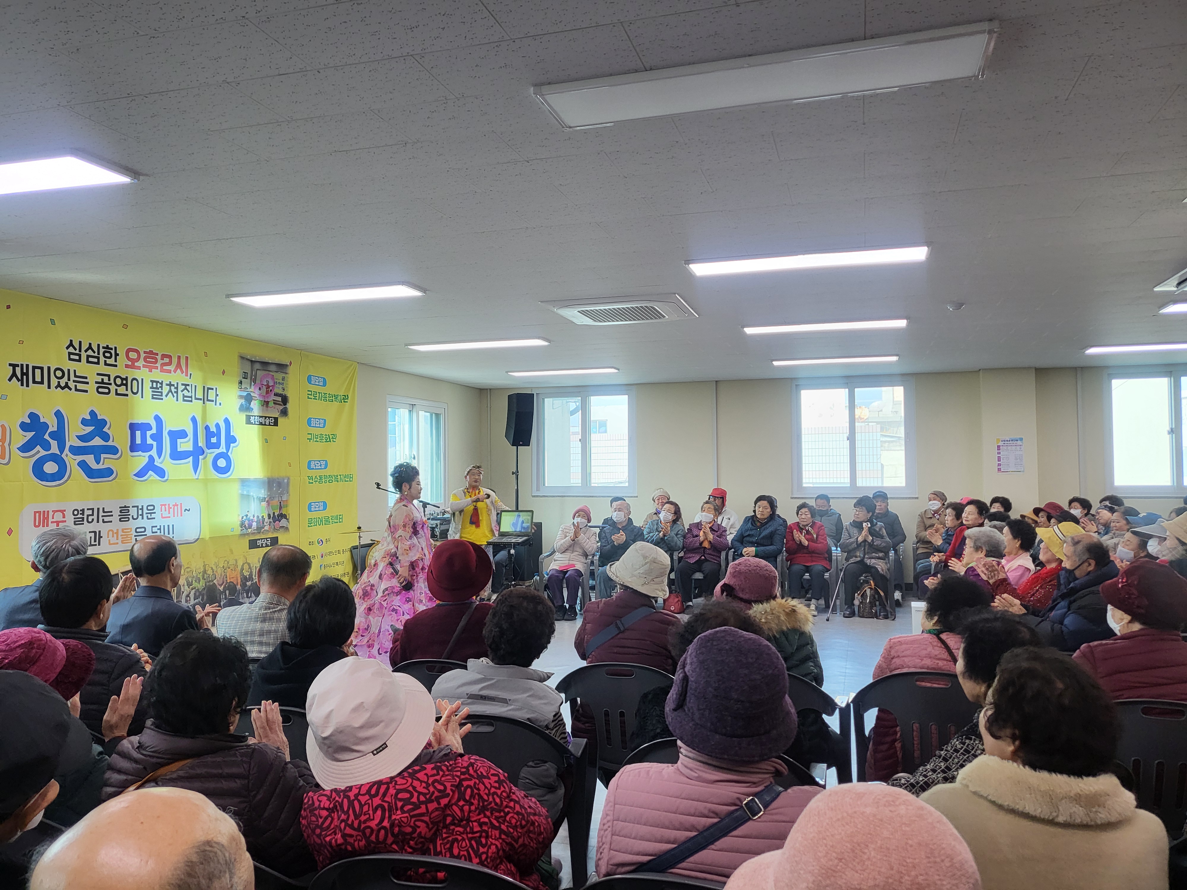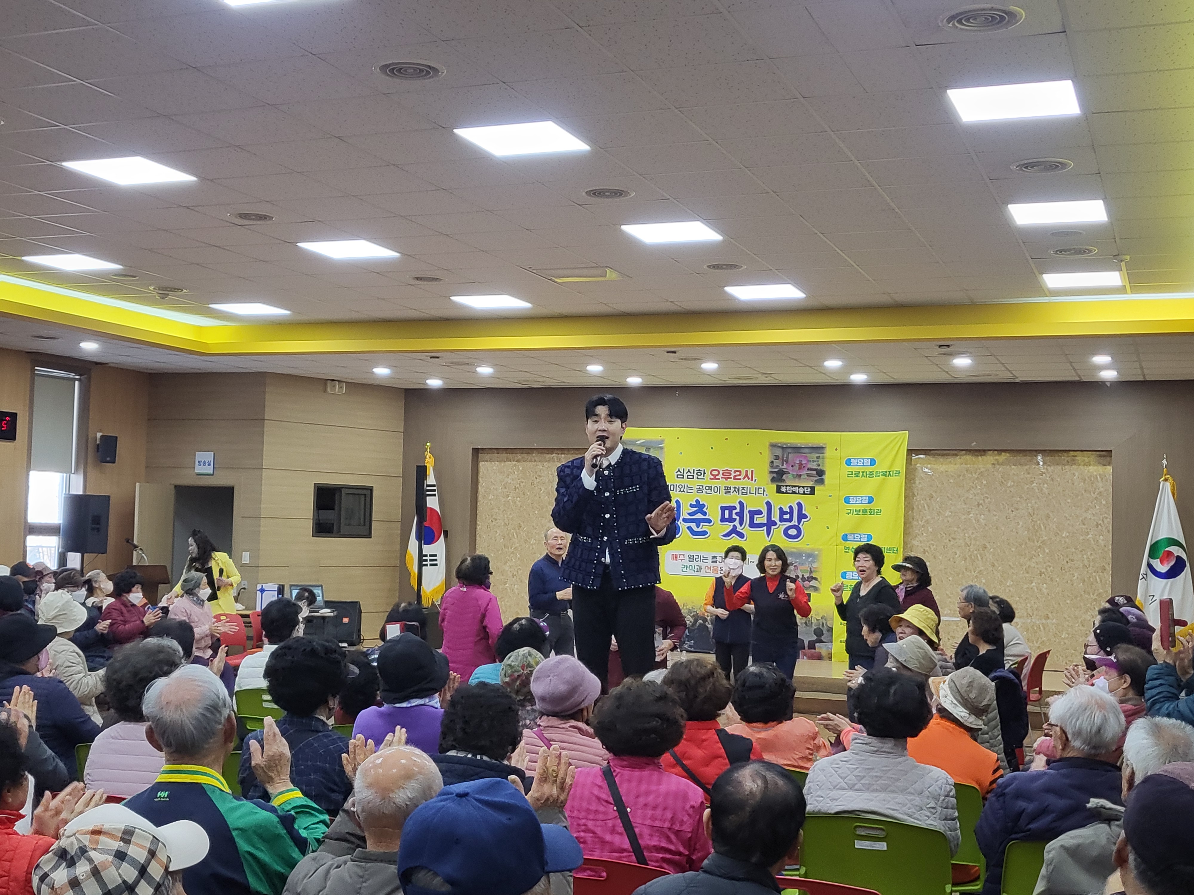 3월30일(월)~4월3일(금)까지는 DJ박하늘과 담으리 고고장구의 공연으로 어르신들의 흥을 돋는 시간을 진행하고 있습니다.